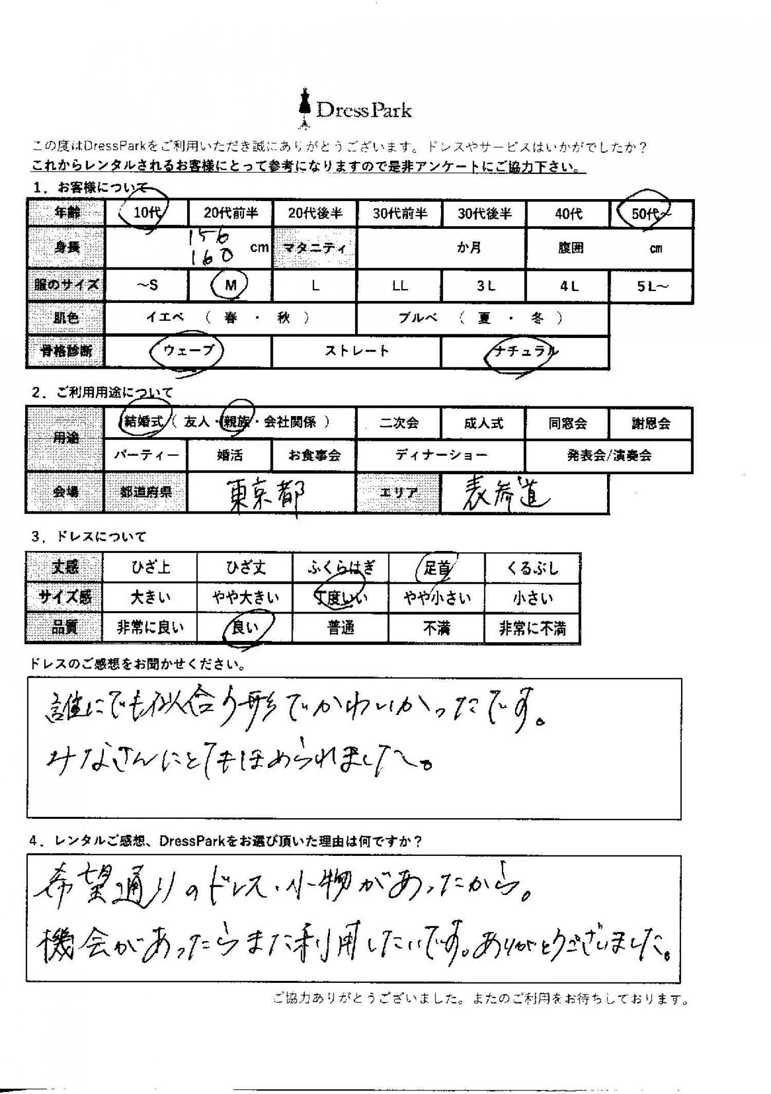 希望通りのドレス小物があったから、機会があったらまた利用したいです。ありがとうございました。