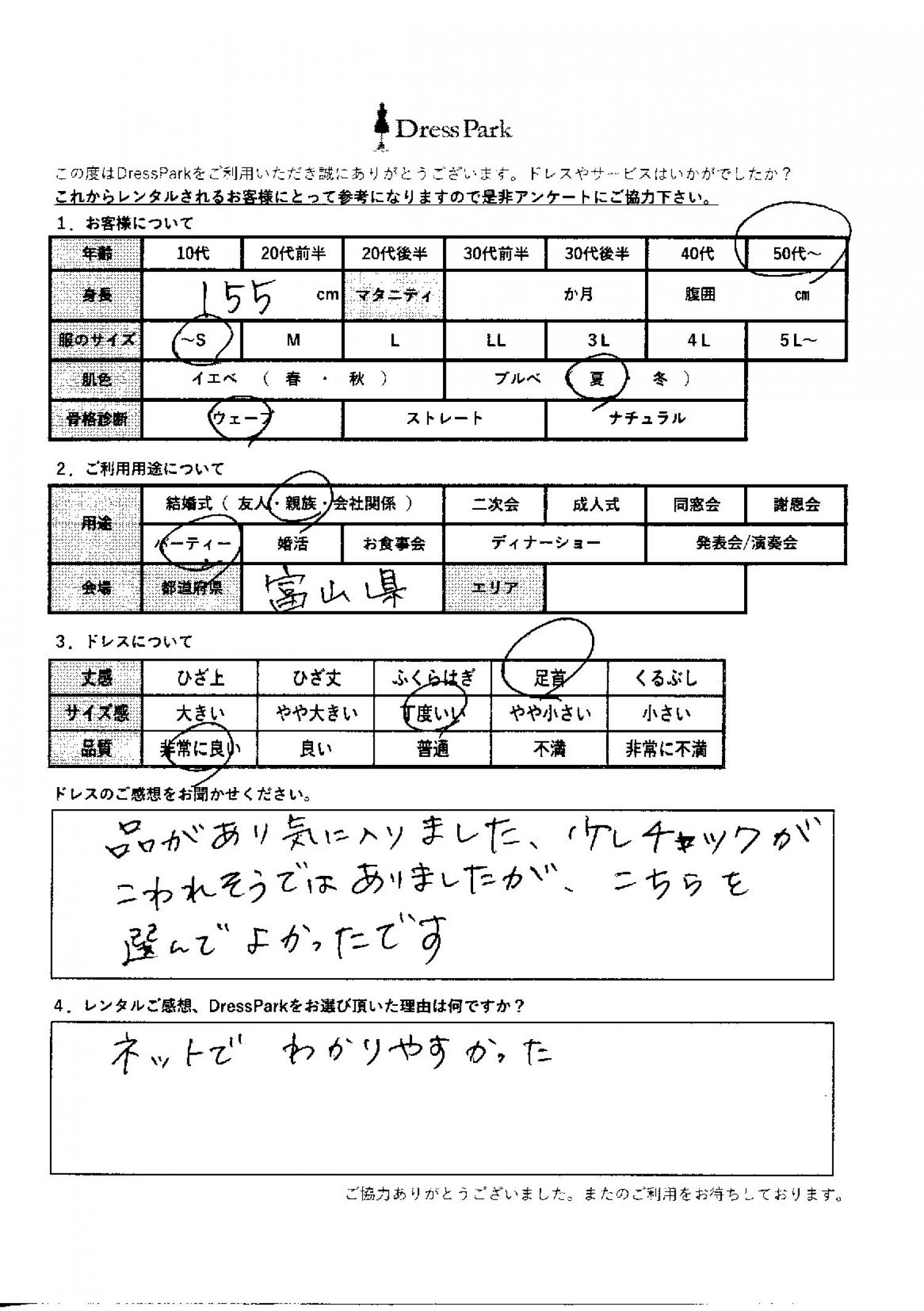 この度はご利用ありがとうございました。ファスナーですが、ご利用後検品いたしましたが、特に不備はありませんでした。お背中のファスナーはご自身では見えないので、どなたかにファスナーをお手伝いいただくと安心してご着用できるかと存じます。またのご利用をお待ちしております。