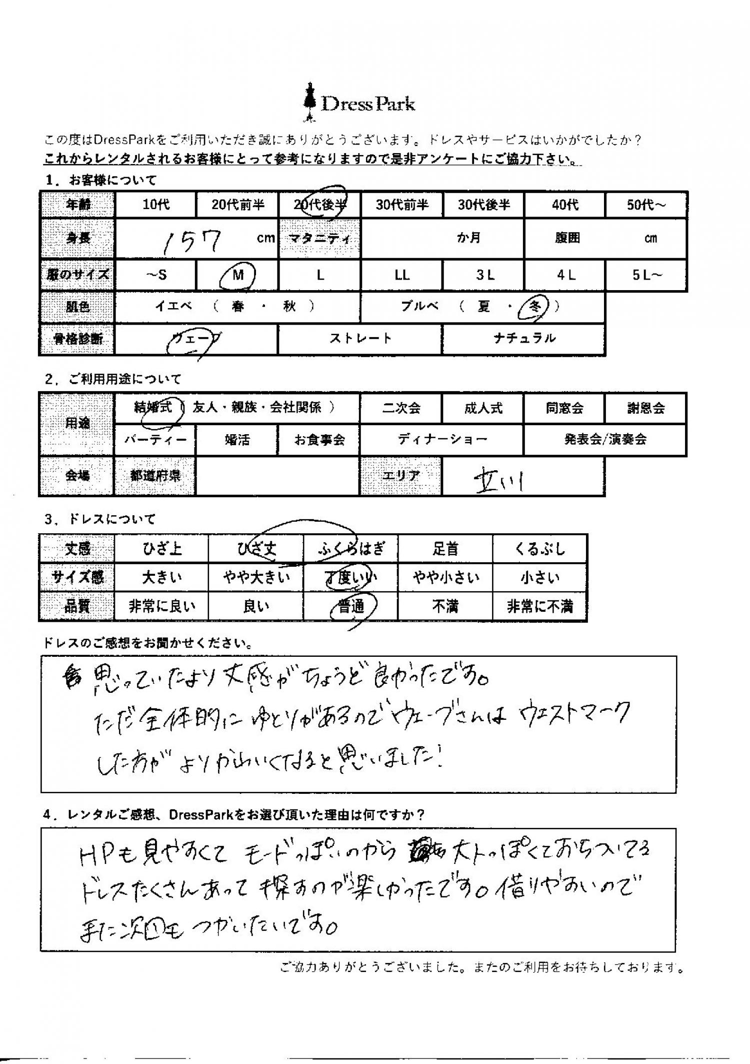 東京都 M.N様157㎝ Mサイズ