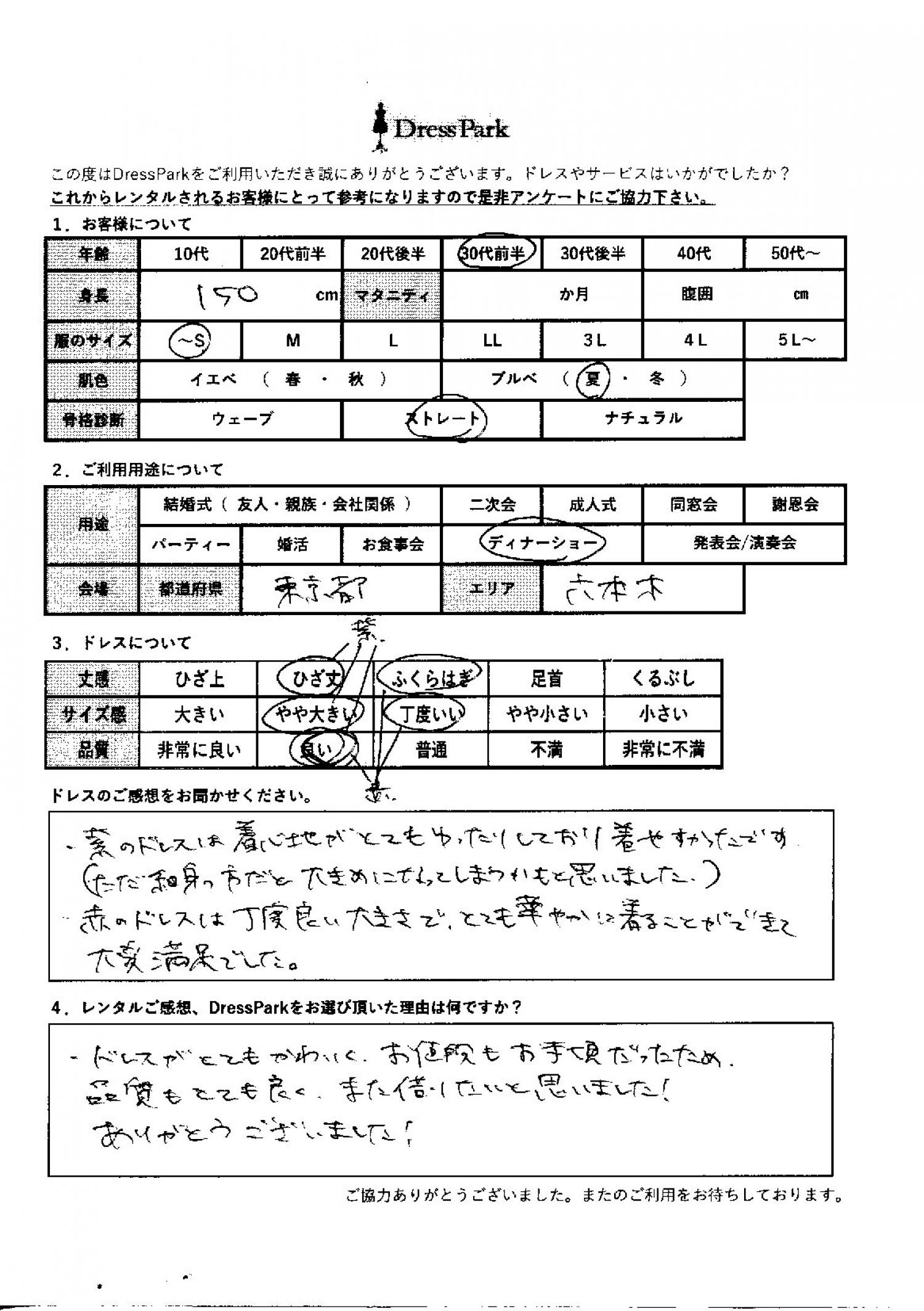 東京都 A.M様150㎝ ~Sサイズ六本木・麻布