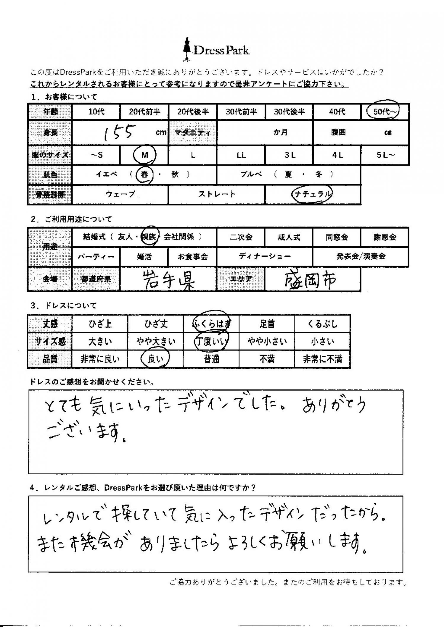 岩手県 M.H様155㎝ Mサイズ