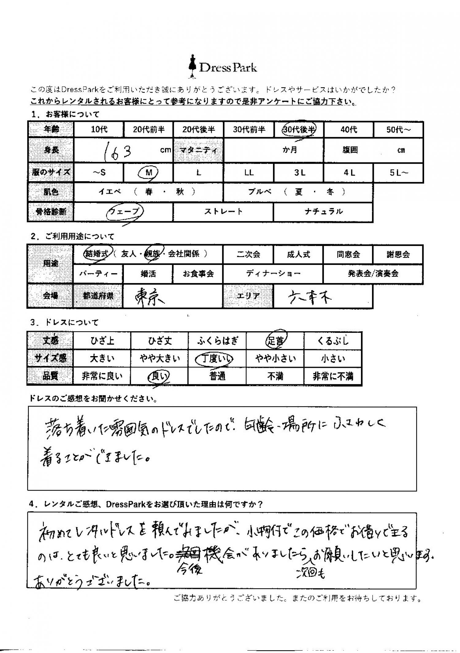 東京都 A.K様163㎝ Mサイズ六本木・麻布