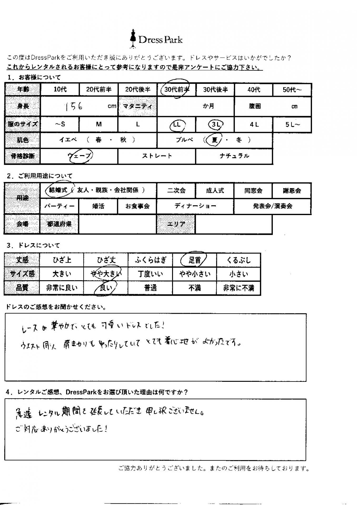 茨城県 H.K様156㎝ 3Lサイズ