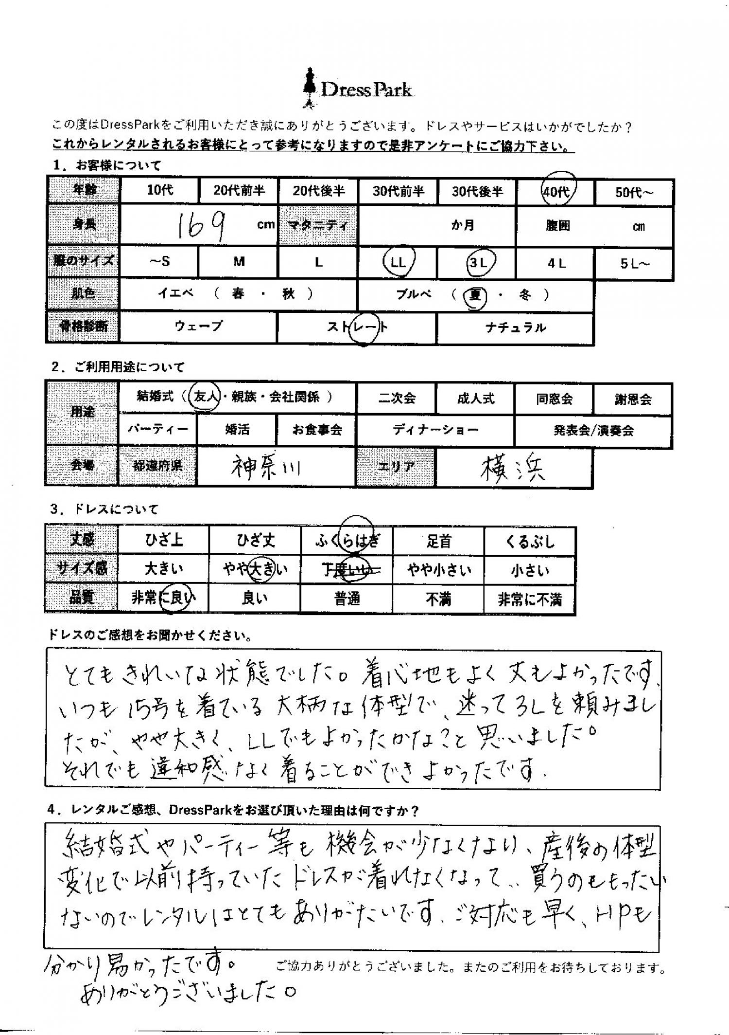 神奈川県 Y.S様169㎝ LLサイズ横浜・みなとみらい
