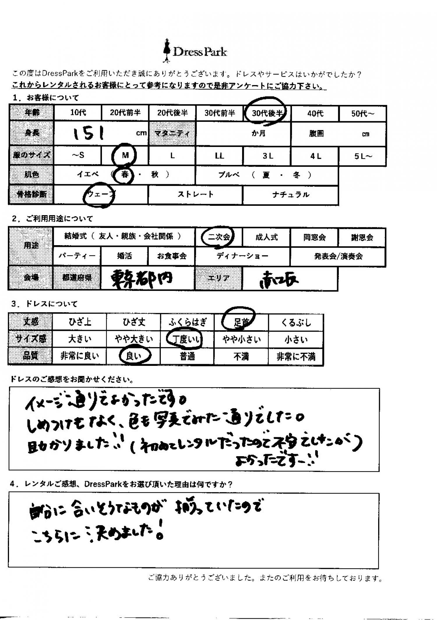 東京都 A.K様151㎝ Mサイズ六本木・麻布