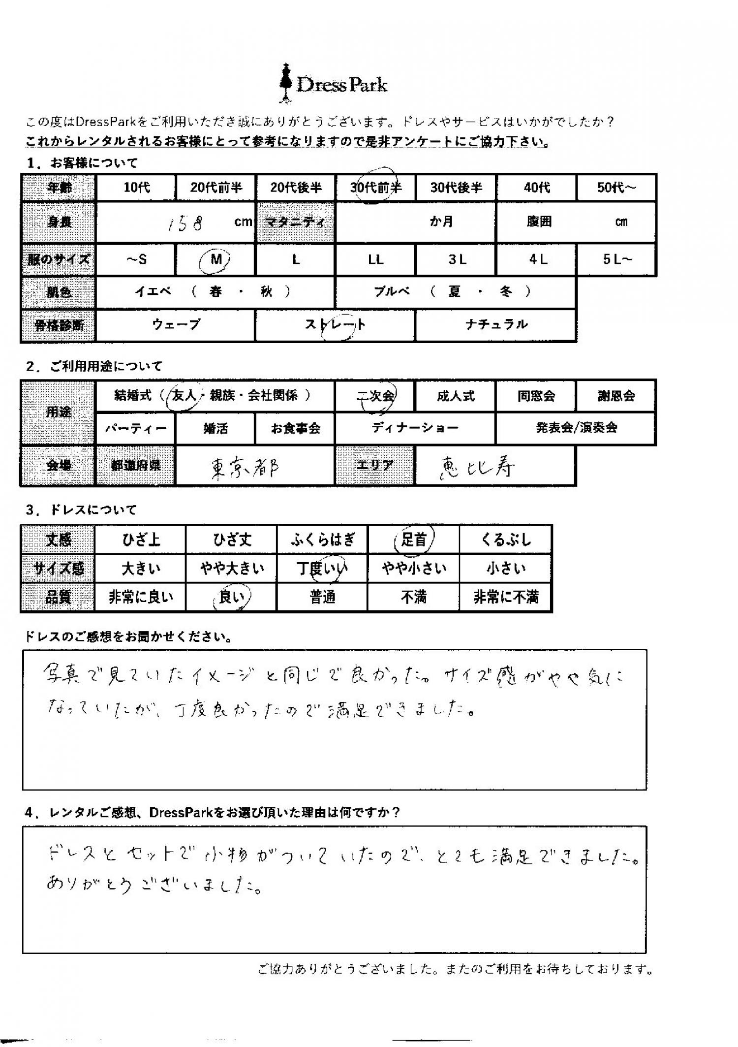 東京都 M.H様158㎝ Mサイズ渋谷・恵比寿