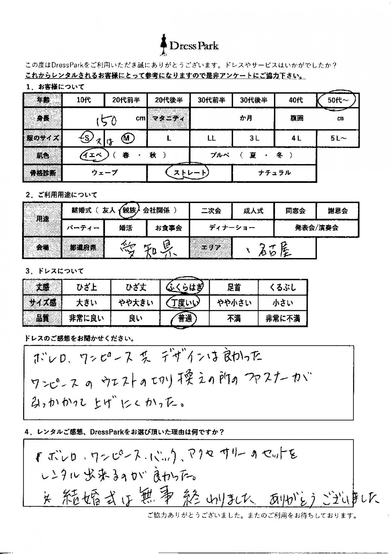 愛知県 M.E様150㎝ ~Sサイズ名古屋