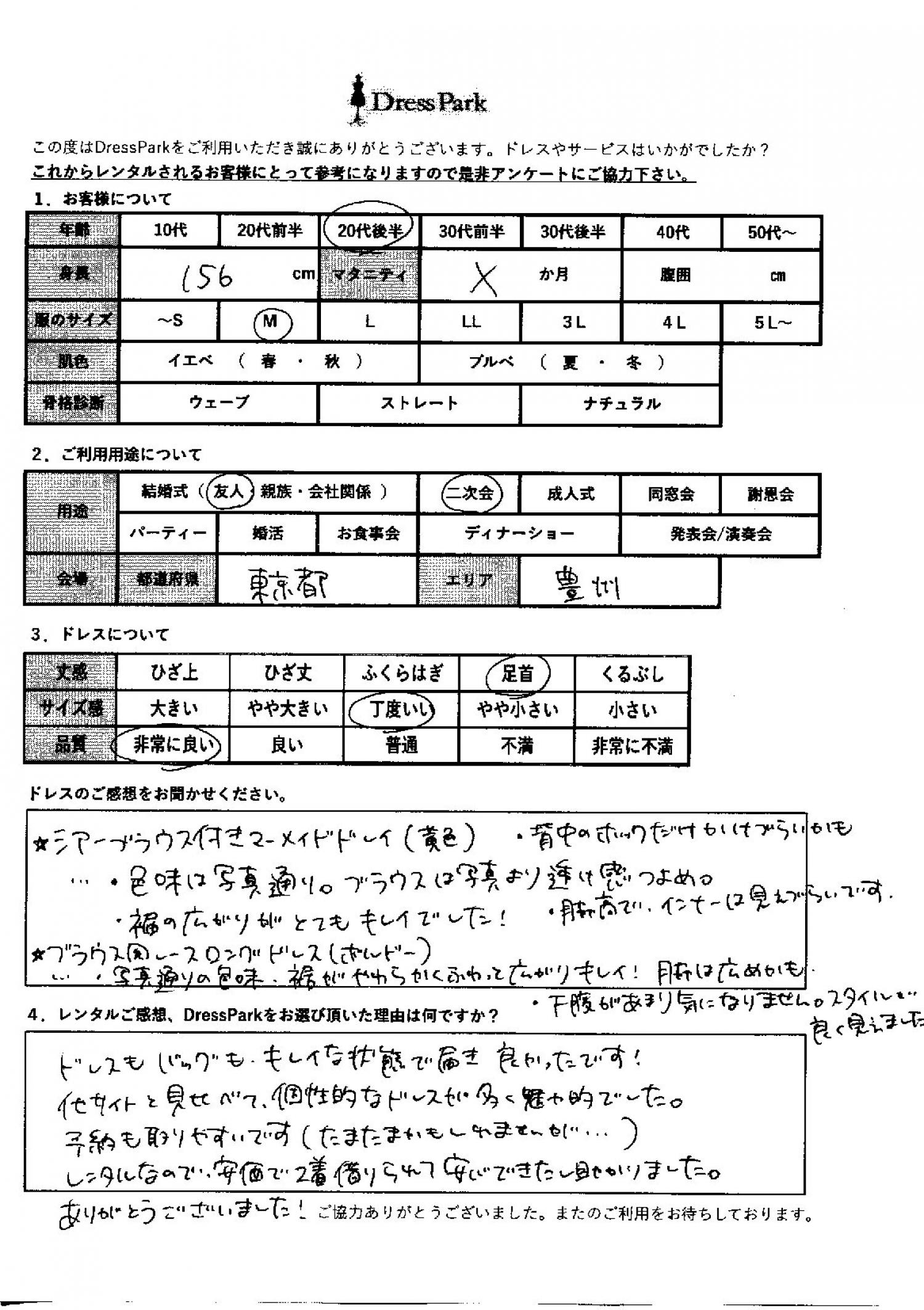 ドレスもバッグもきれいな状態で届きよかったです!他サイトと見比べて、個性的なドレスが多く魅力的でした。予約も取りやすいです。(たまたまかもしれませんが… )レンタルなので、安価で2着借りられて安心できたし助かりました。ありがとうございました!
