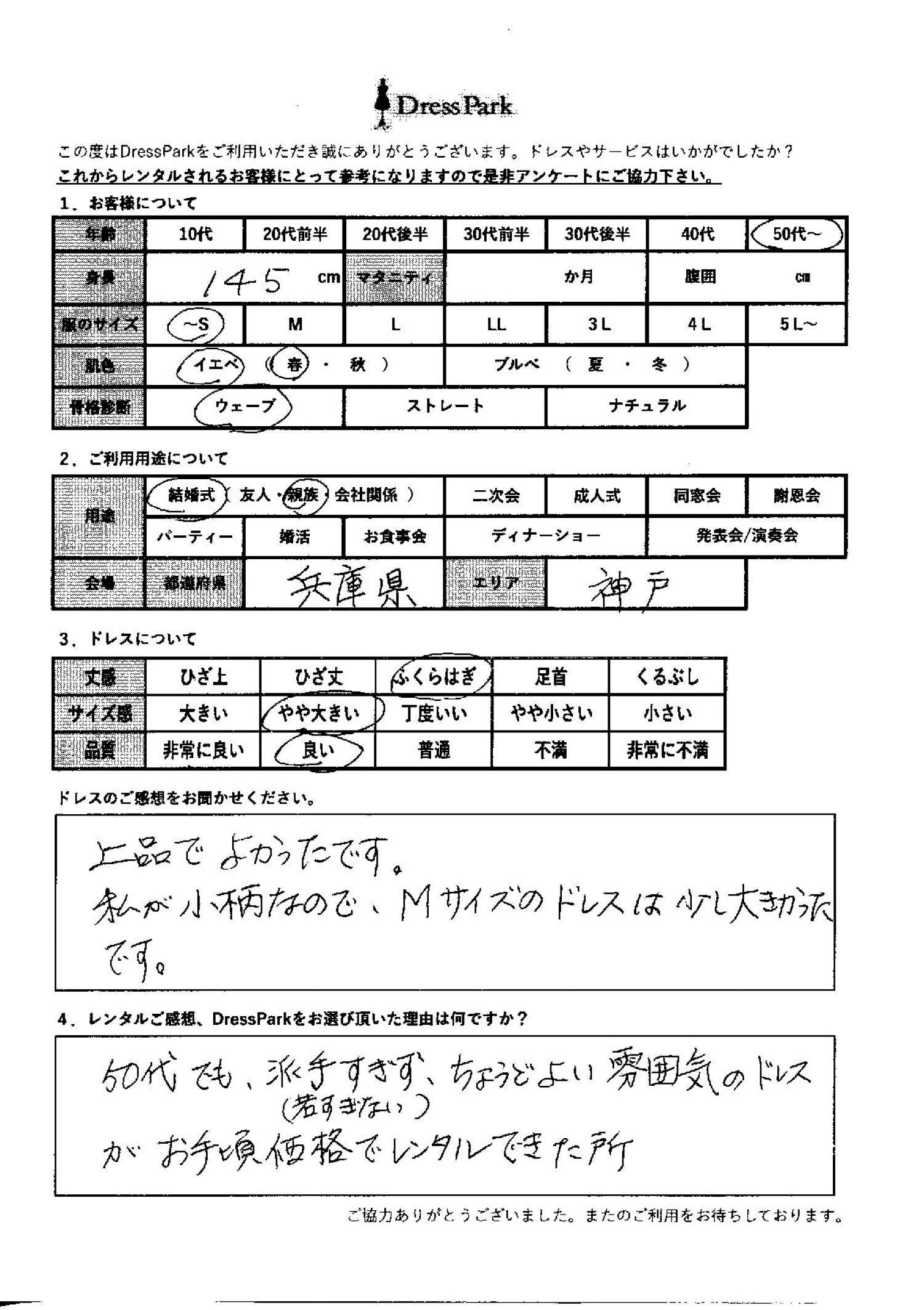 兵庫県 K.N様145㎝ ~Sサイズ神戸・芦屋