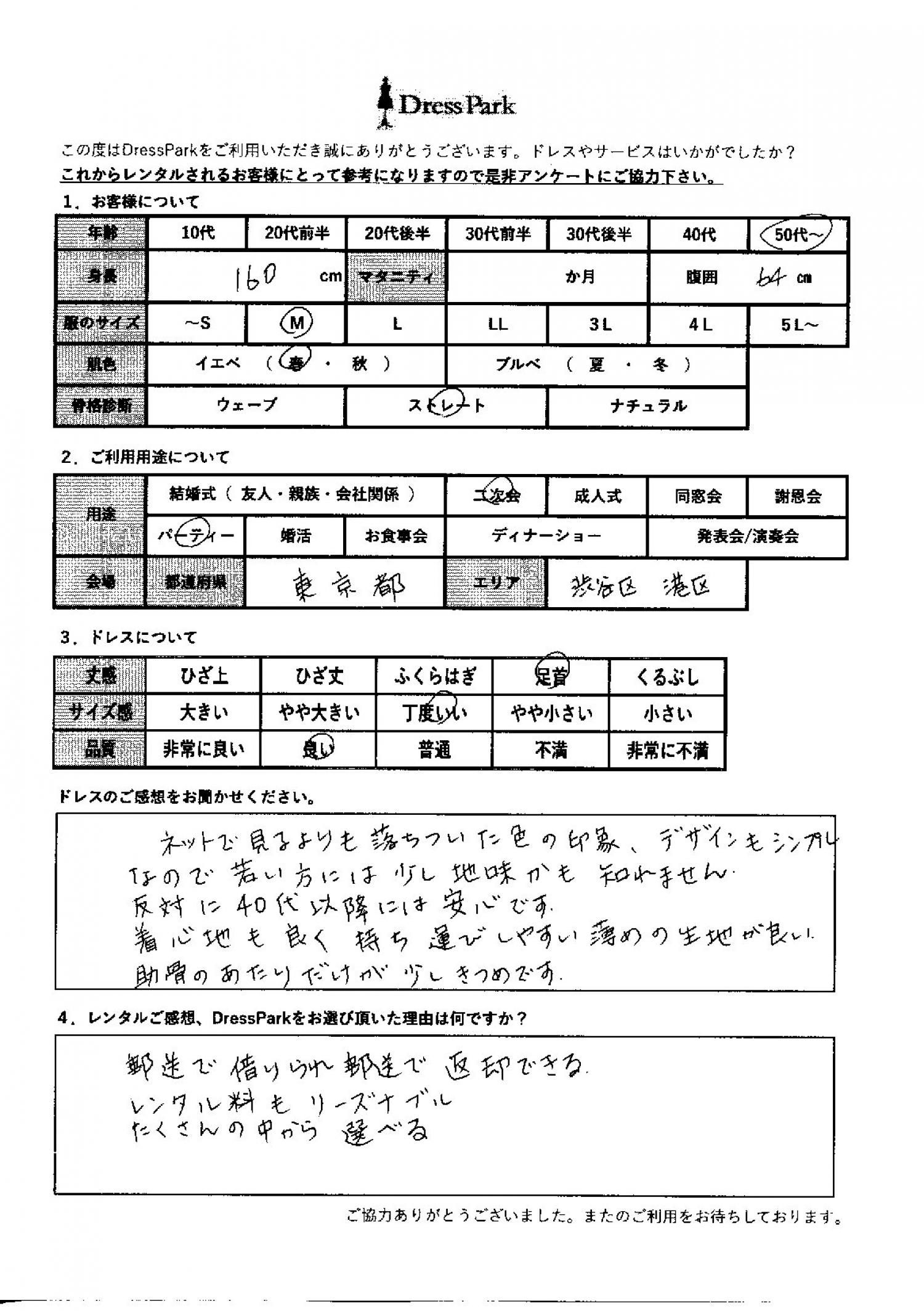 東京都 M.I様160㎝ Mサイズ渋谷・恵比寿
