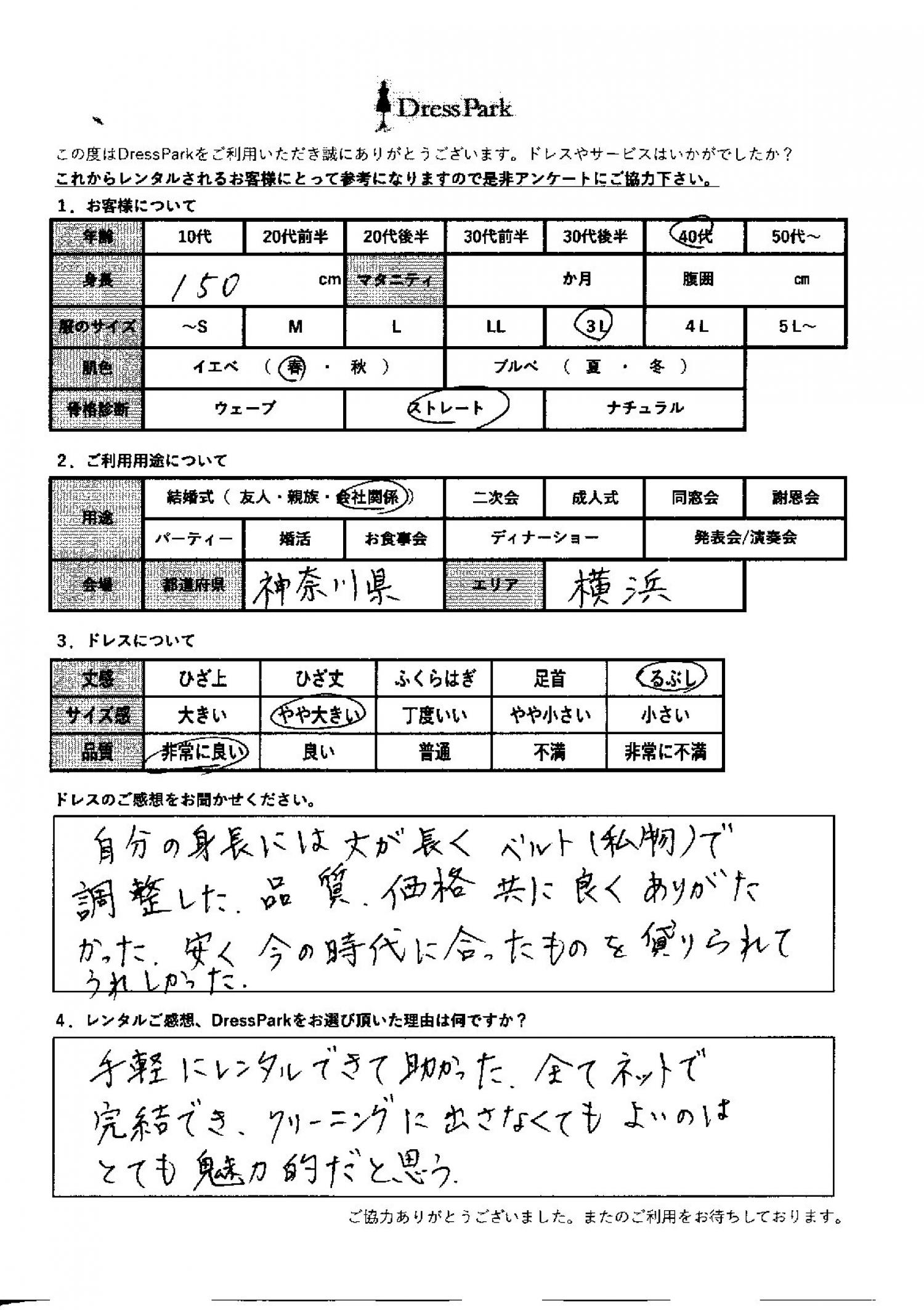 神奈川県 Y.S様150㎝ 3Lサイズ横浜・みなとみらい