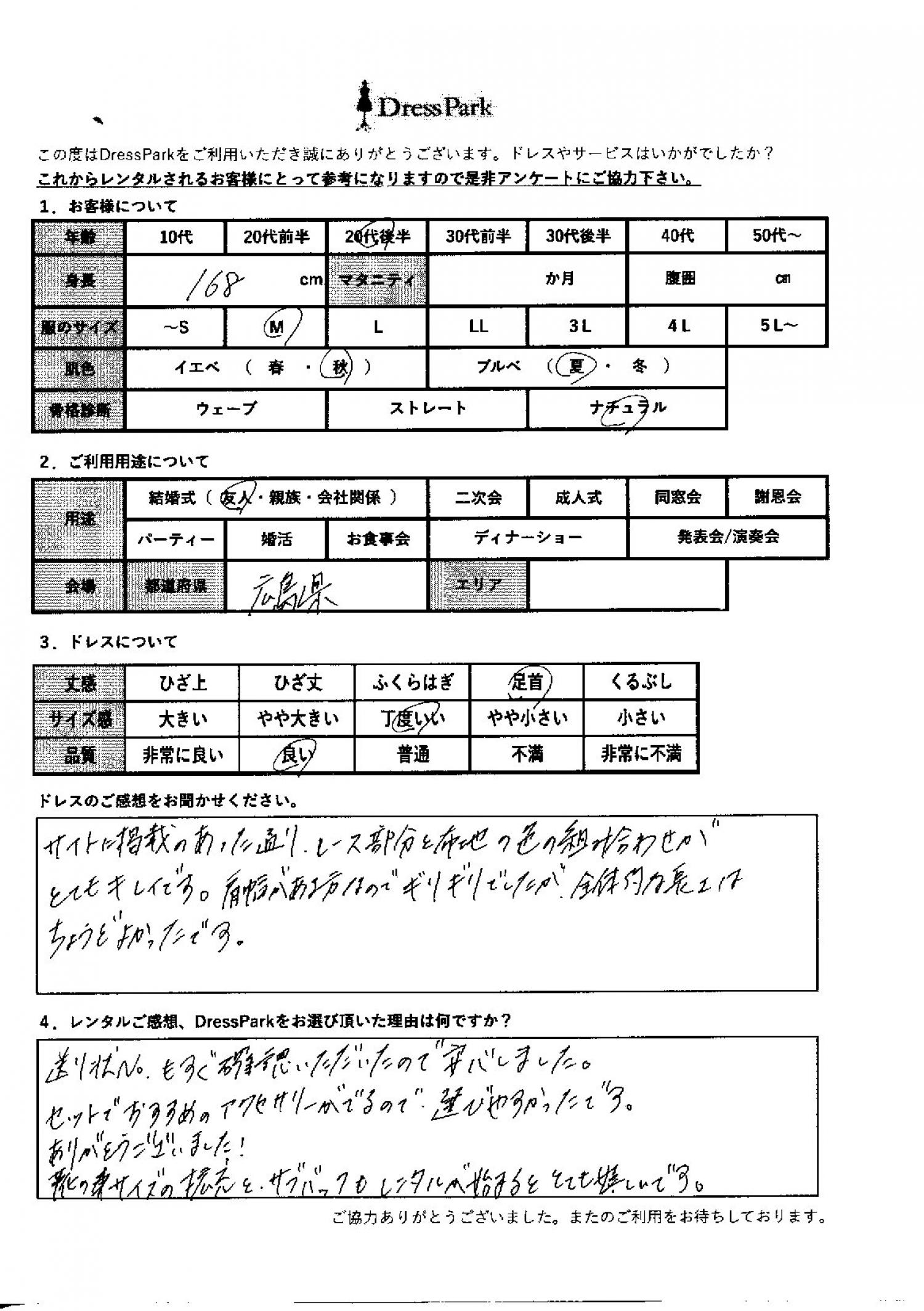 広島県 M.N様168㎝ Mサイズ