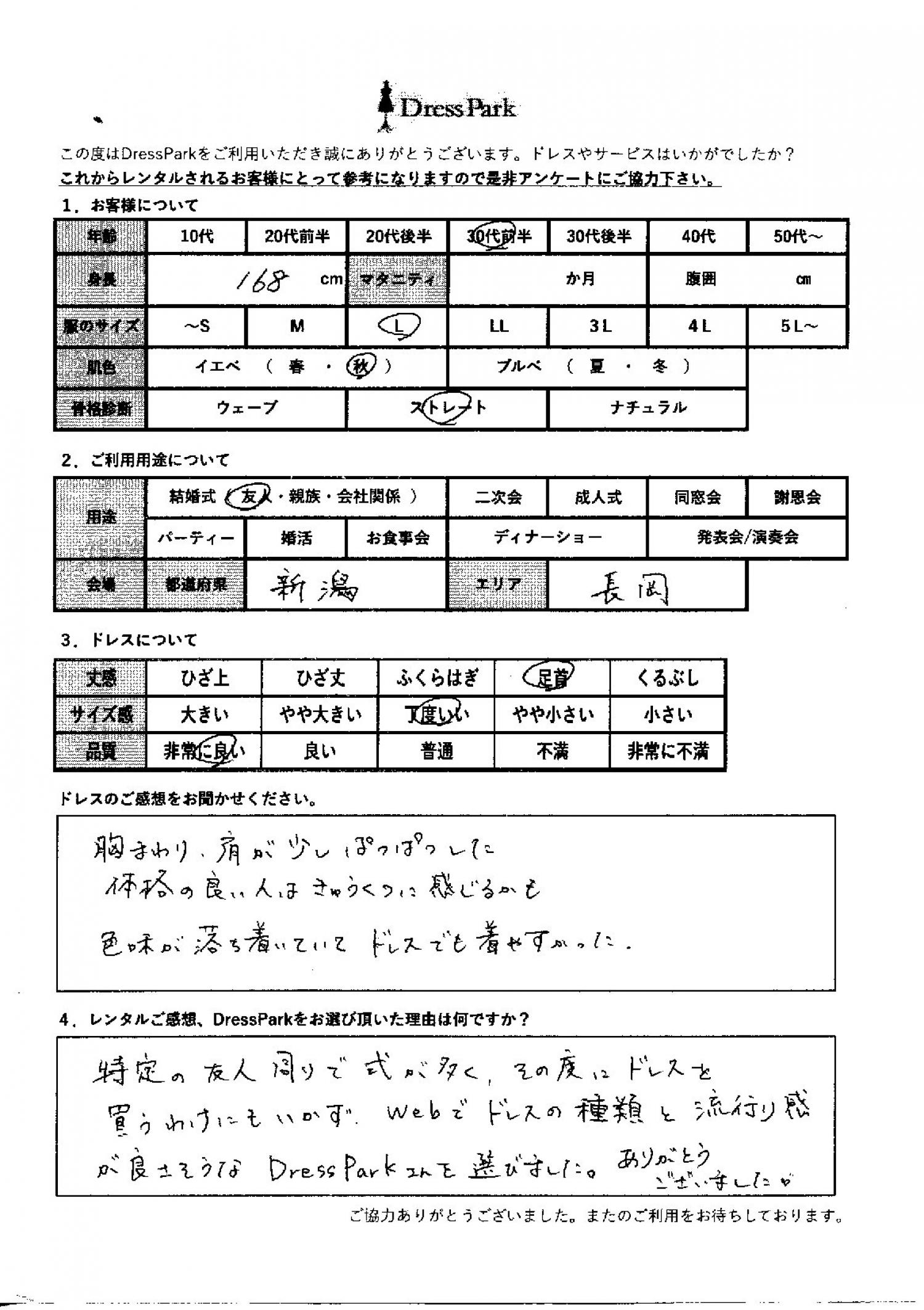 新潟県 T.T様168㎝ Lサイズ