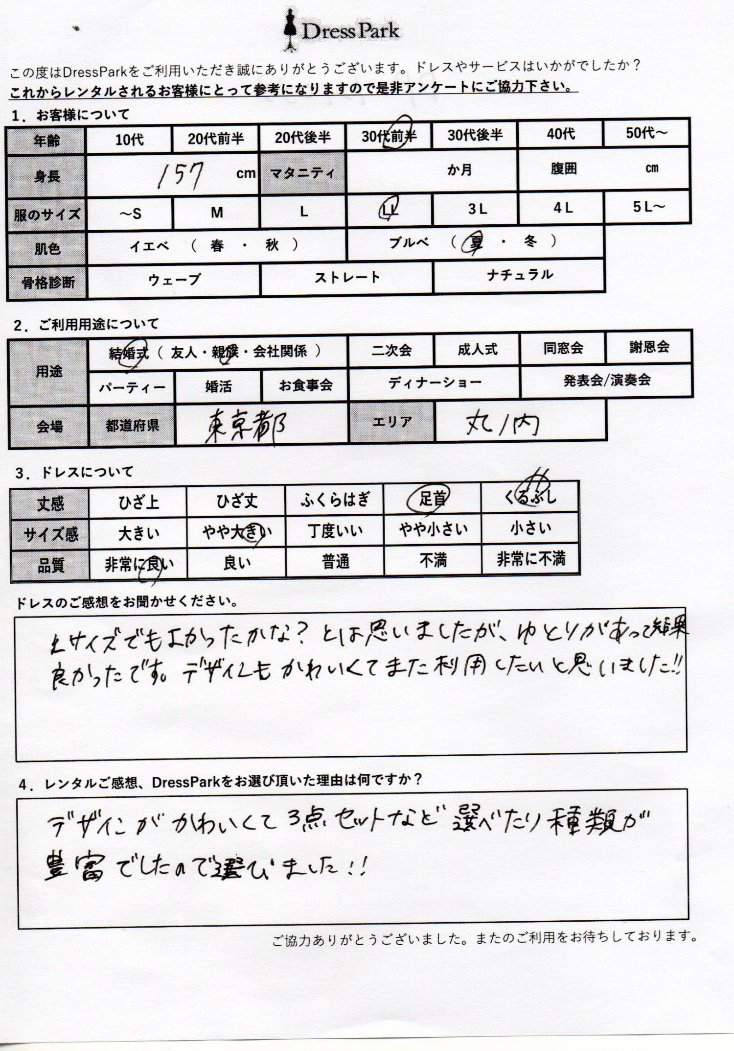 東京都 K.A様157㎝ LLサイズ銀座・丸の内
