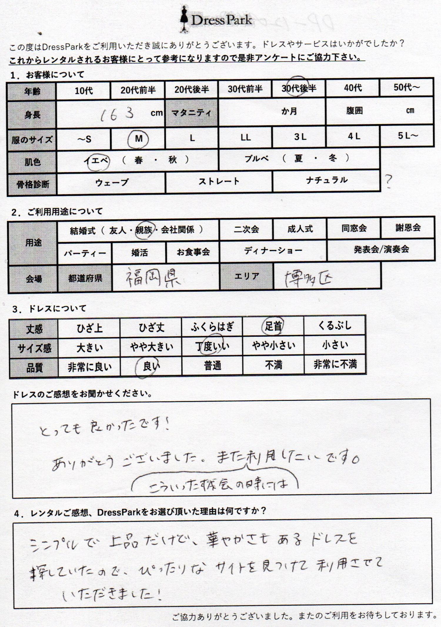 福岡県 M.I様163㎝ Mサイズ博多
