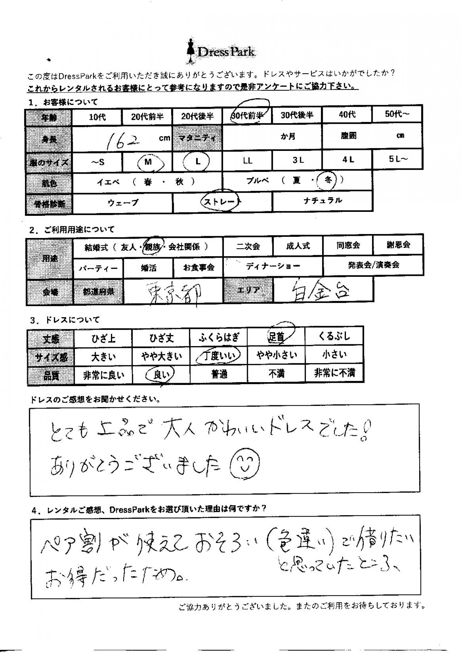 東京都 R.O様162㎝ Mサイズ六本木・麻布