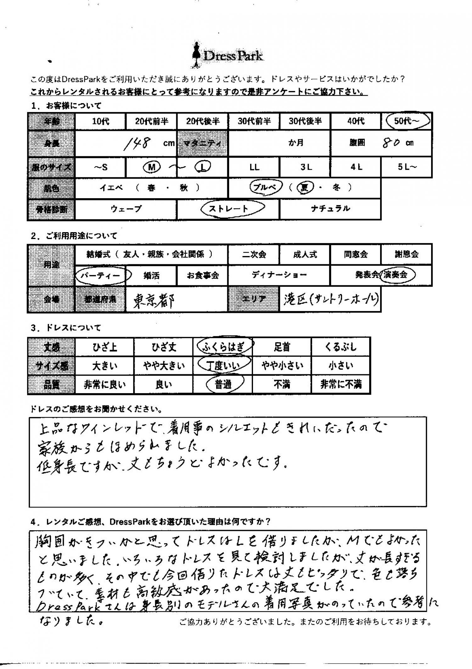 東京都 T.K様148㎝ Mサイズ六本木・麻布
