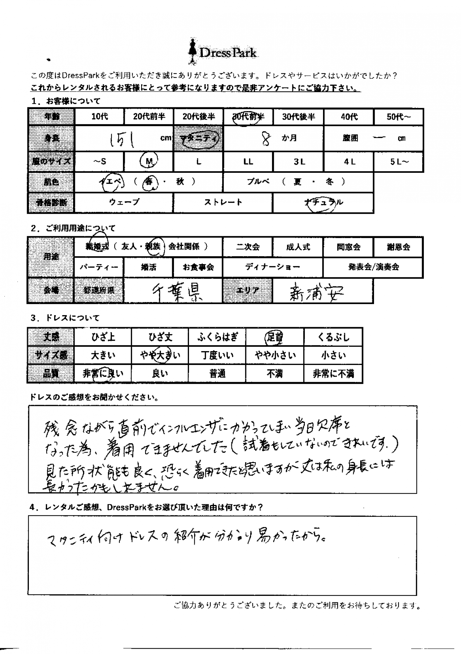 千葉県 M.S様151㎝ Mサイズ舞浜・浦安・幕張 マタニティ