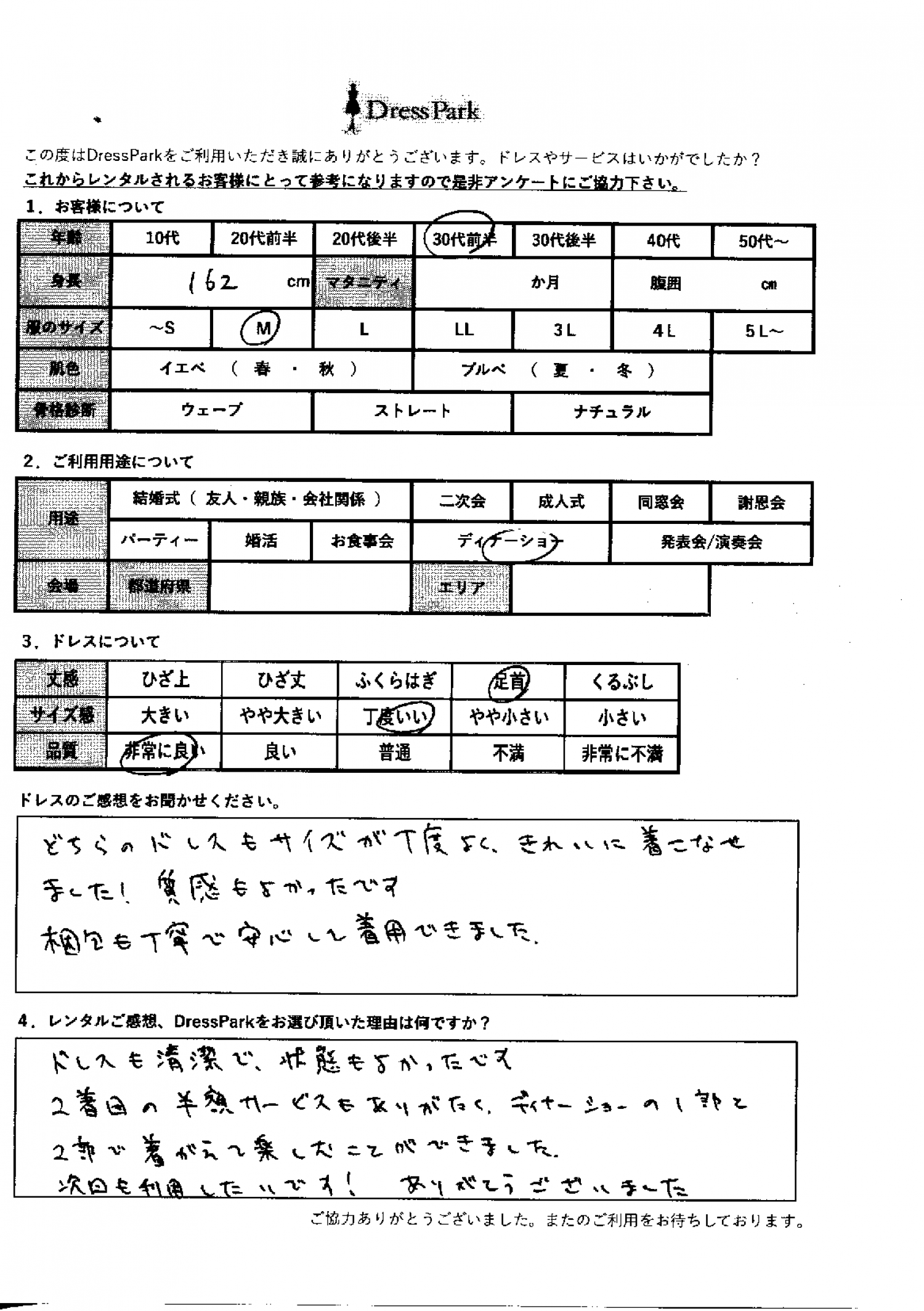 DressParkをお選び頂いた理由