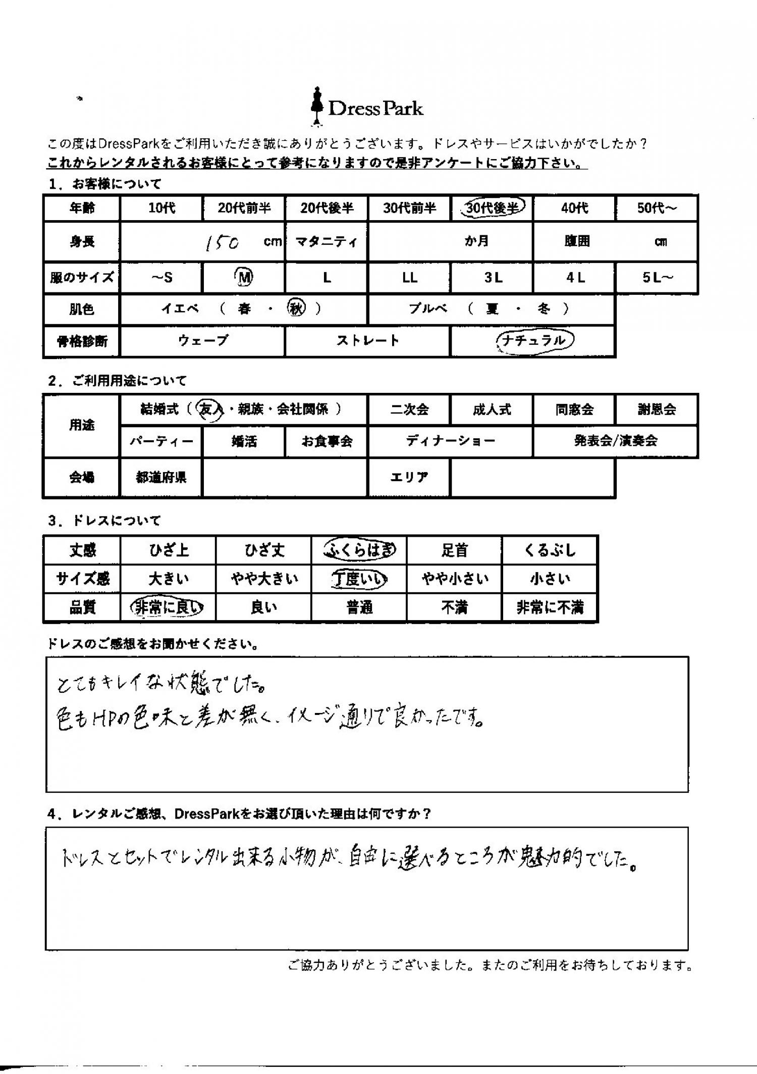 とてもきれいな状態でした。色もホームページの色味と差がなくイメージ通りで良かったです。レンタルのご感想、