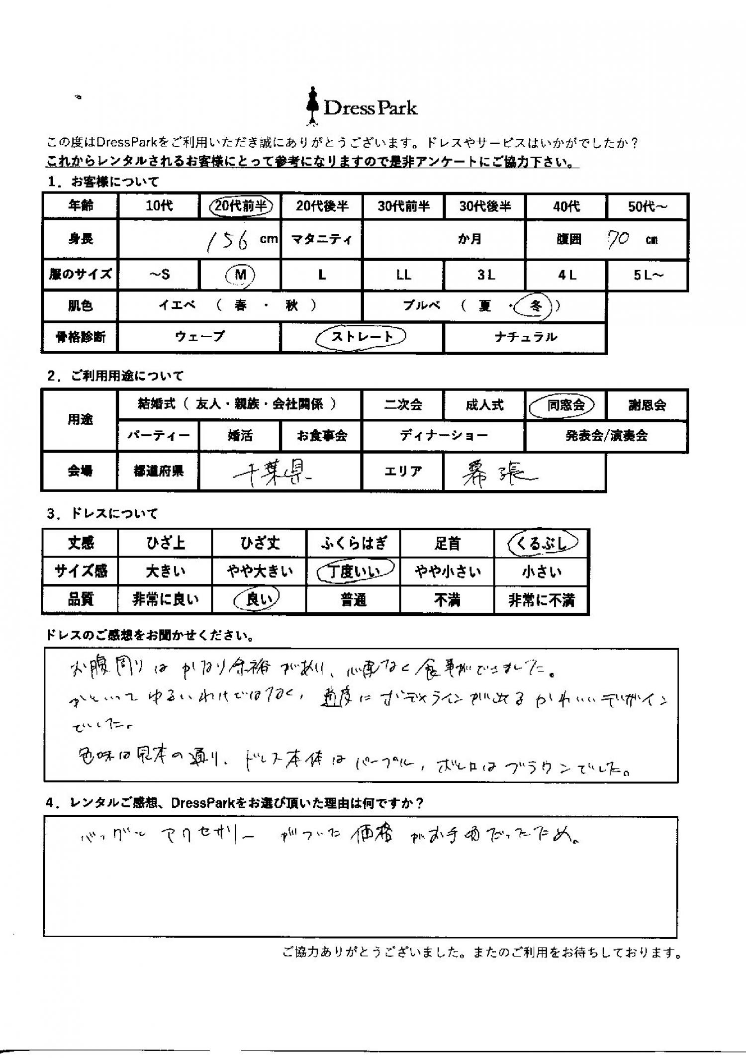 千葉県 A.S様156㎝ Mサイズ舞浜・浦安・幕張