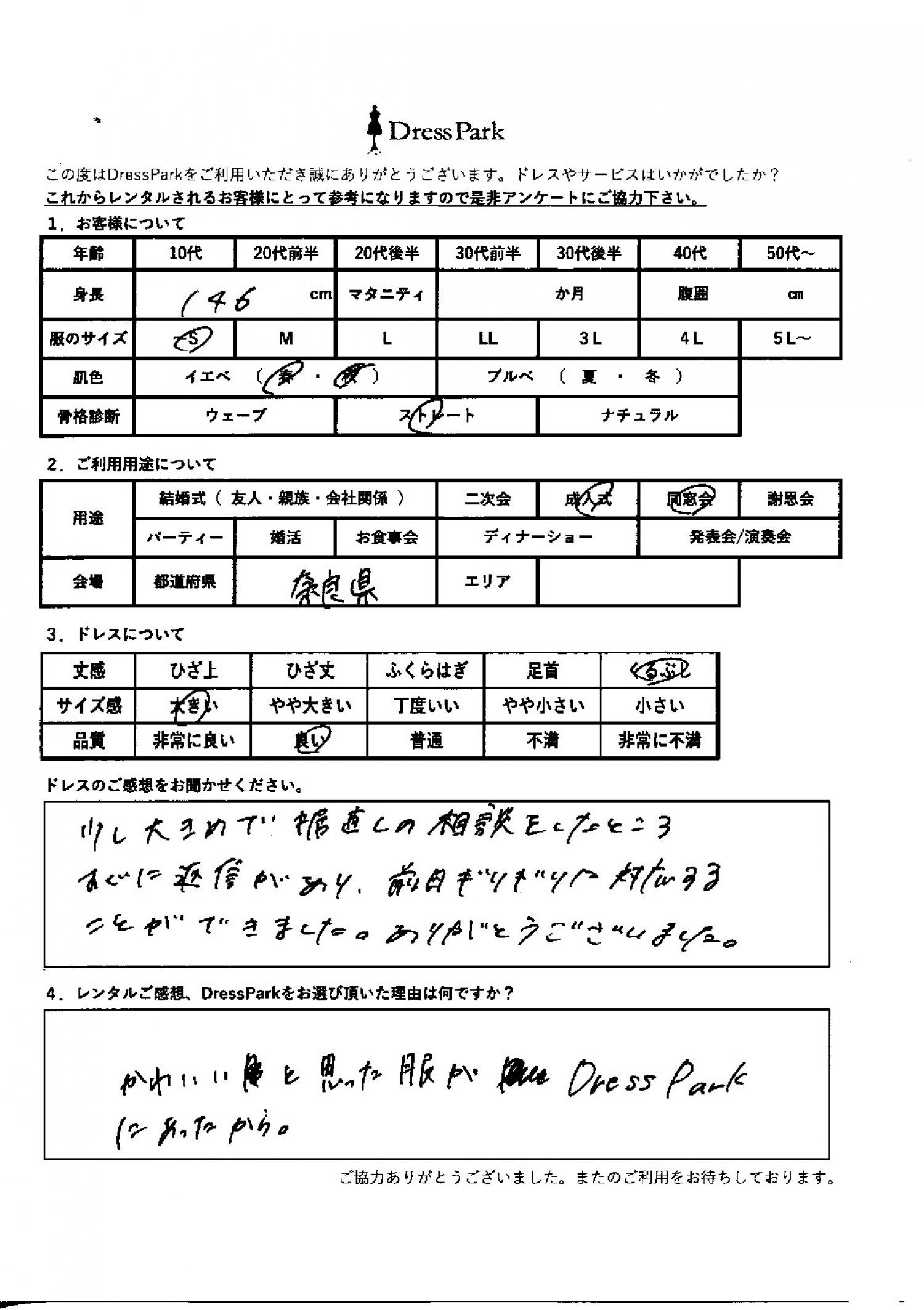 奈良県 R.M様146㎝ ~Sサイズ