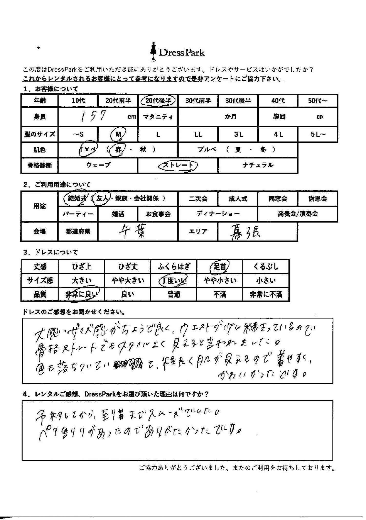 千葉県 K.Y様157㎝ Mサイズ舞浜・浦安・幕張