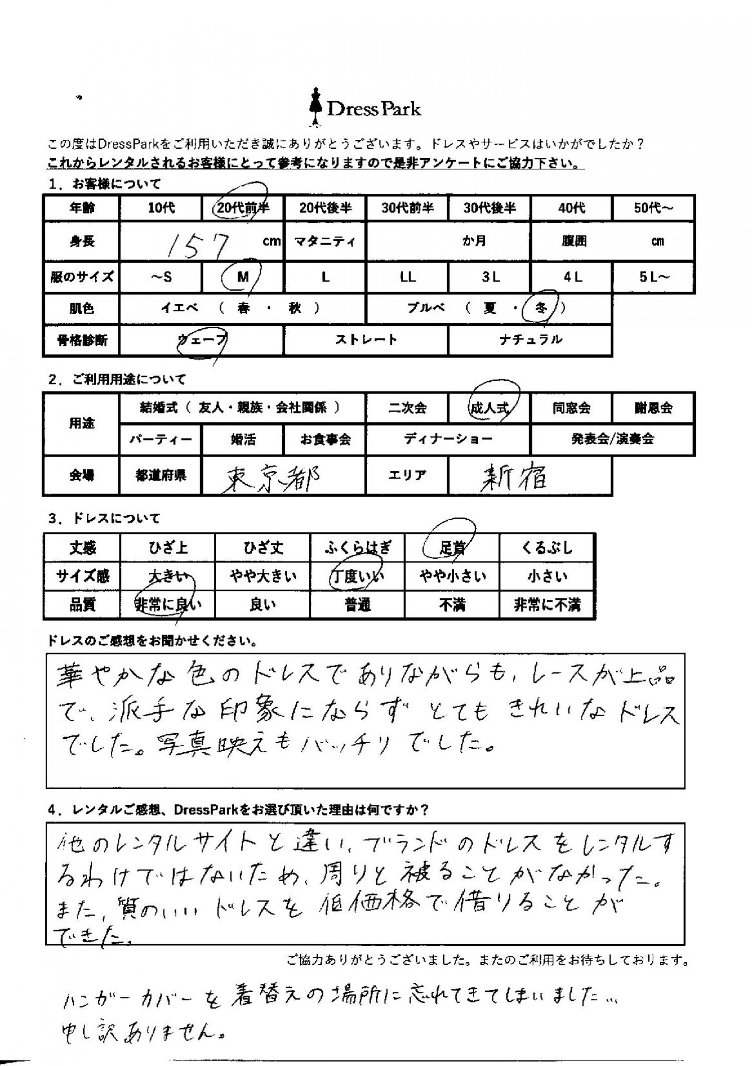 東京都 M.O様157㎝ Mサイズ新宿
