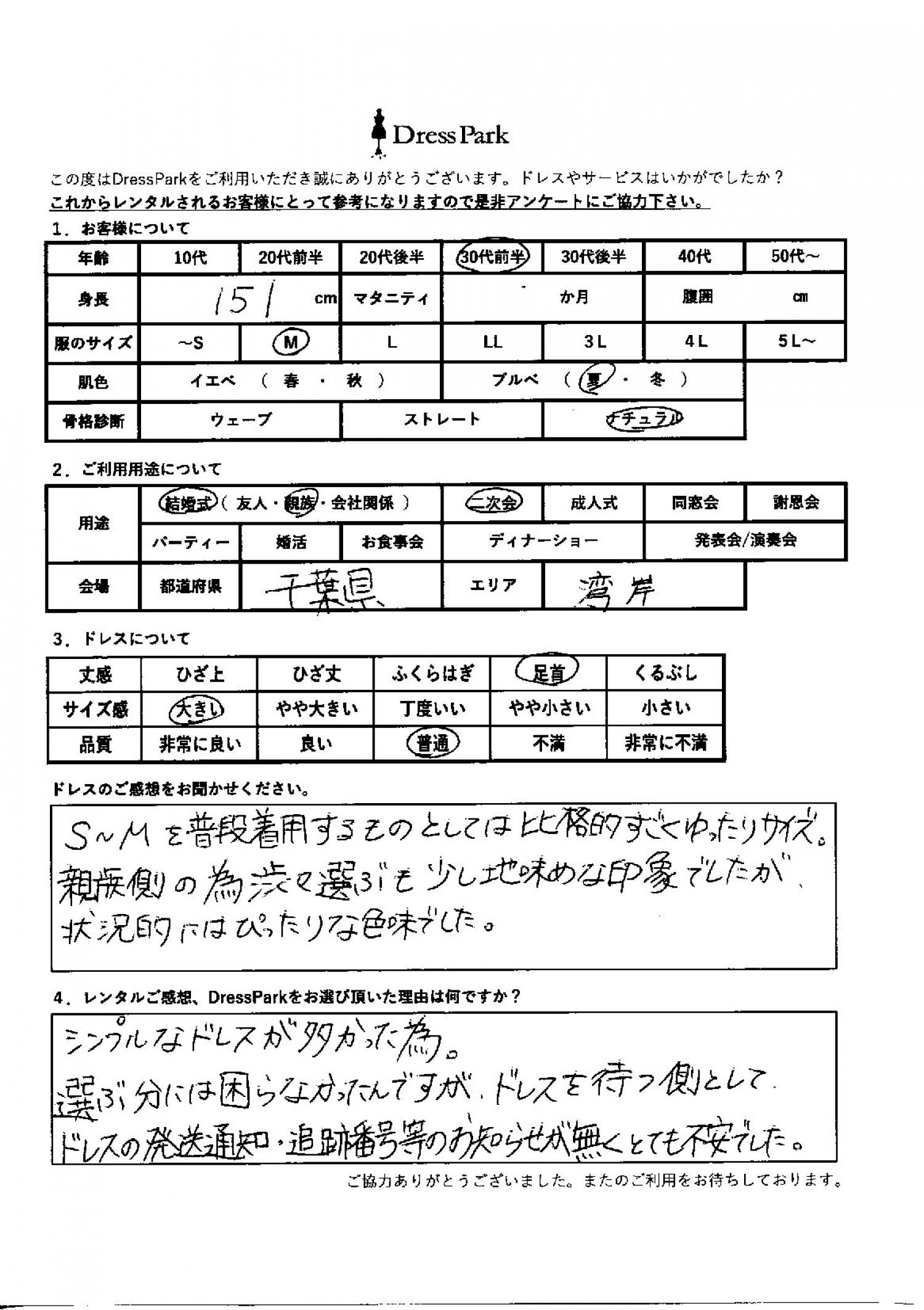 SサイズからMサイズを普段着用するものとしては、比較的すごくゆったりサイズ。親族側のためしぶしぶ選ぶも、少し地味めな印象でしたが、状況的にはぴったりな色味でした。レンタルのご感想、