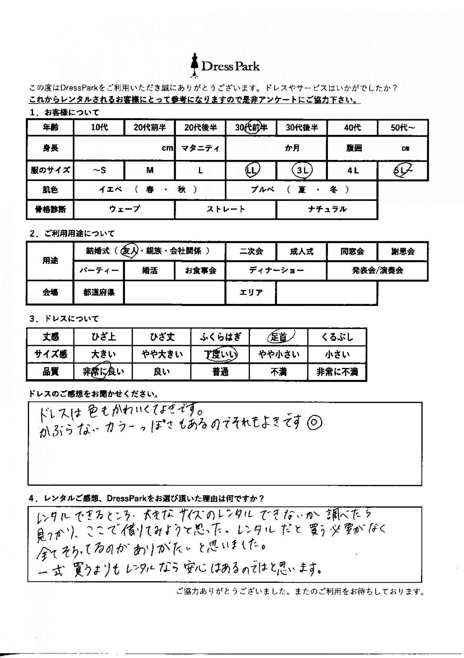 鹿児島県 N.I様0㎝ 5L~サイズ