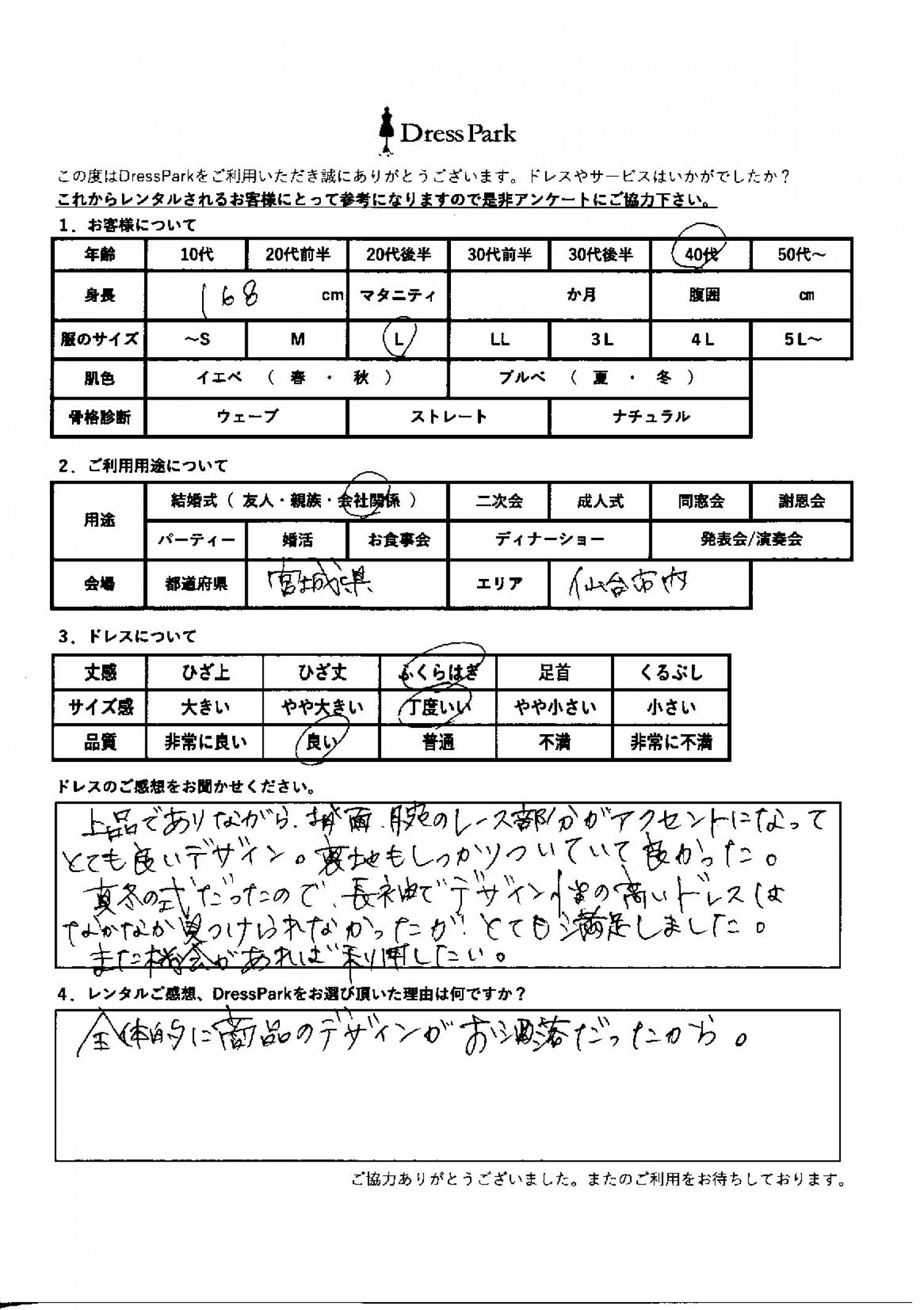 宮城県 M.S様168㎝ Lサイズ仙台