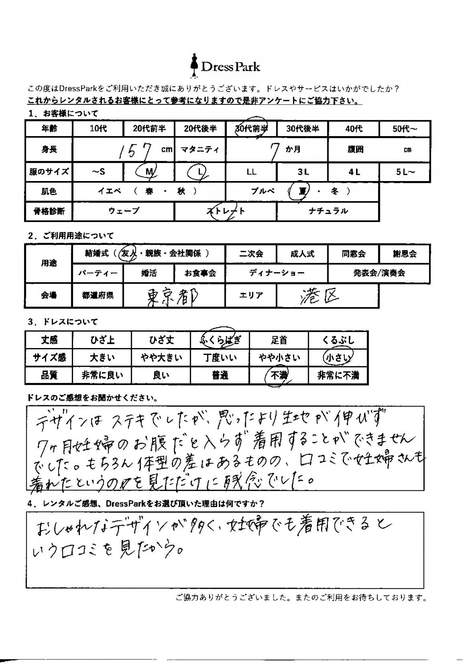 東京都 K.T様157㎝ Mサイズ六本木・麻布 マタニティ