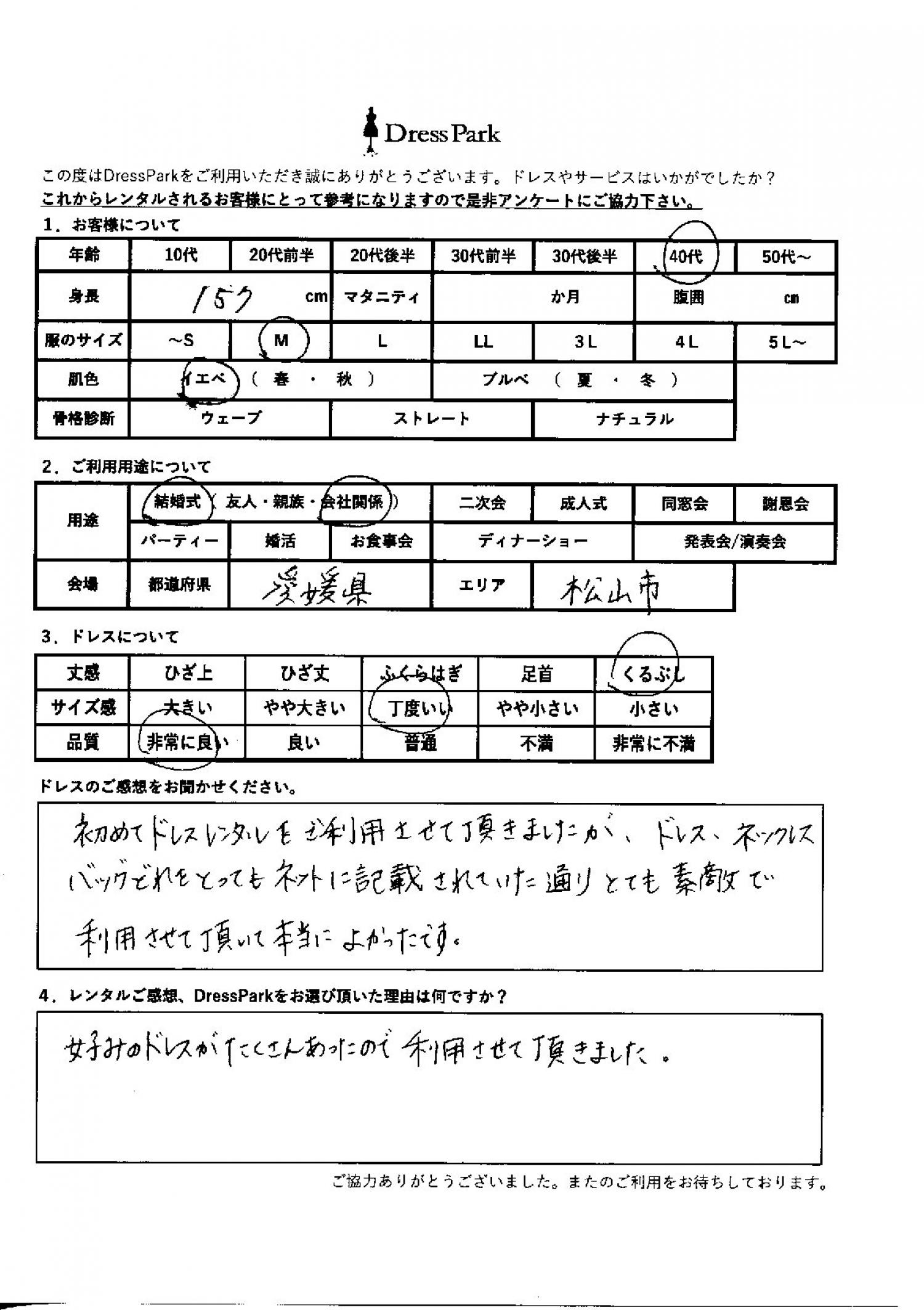 愛媛県 R.U様157㎝ Mサイズ