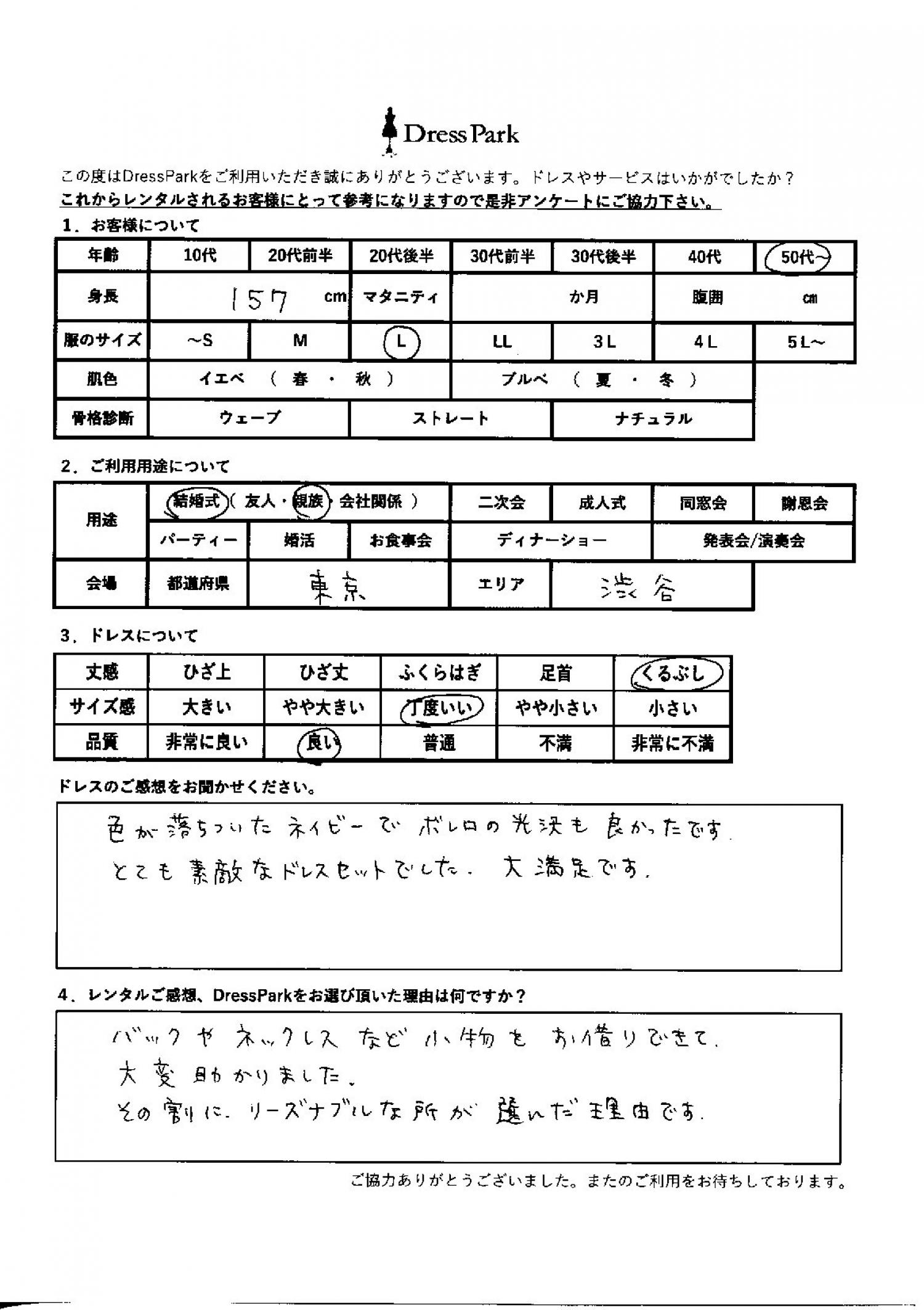東京都 S.K様157㎝ Lサイズ渋谷・恵比寿