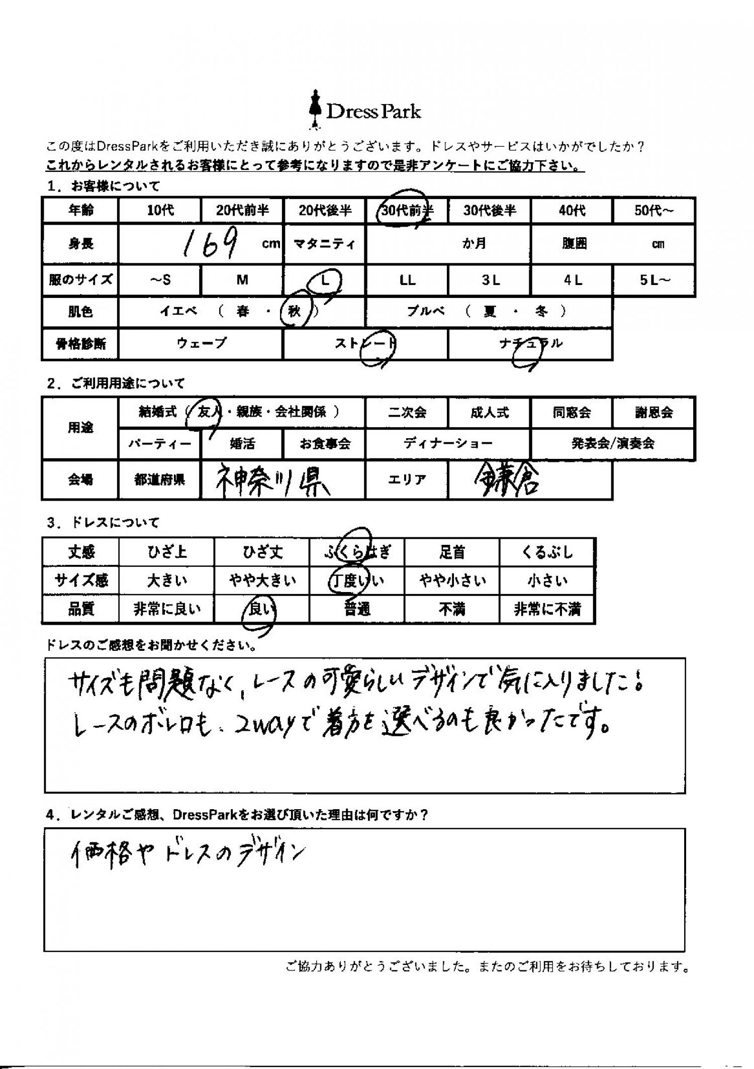 神奈川県 H.T様169㎝ Lサイズ鎌倉・湘南