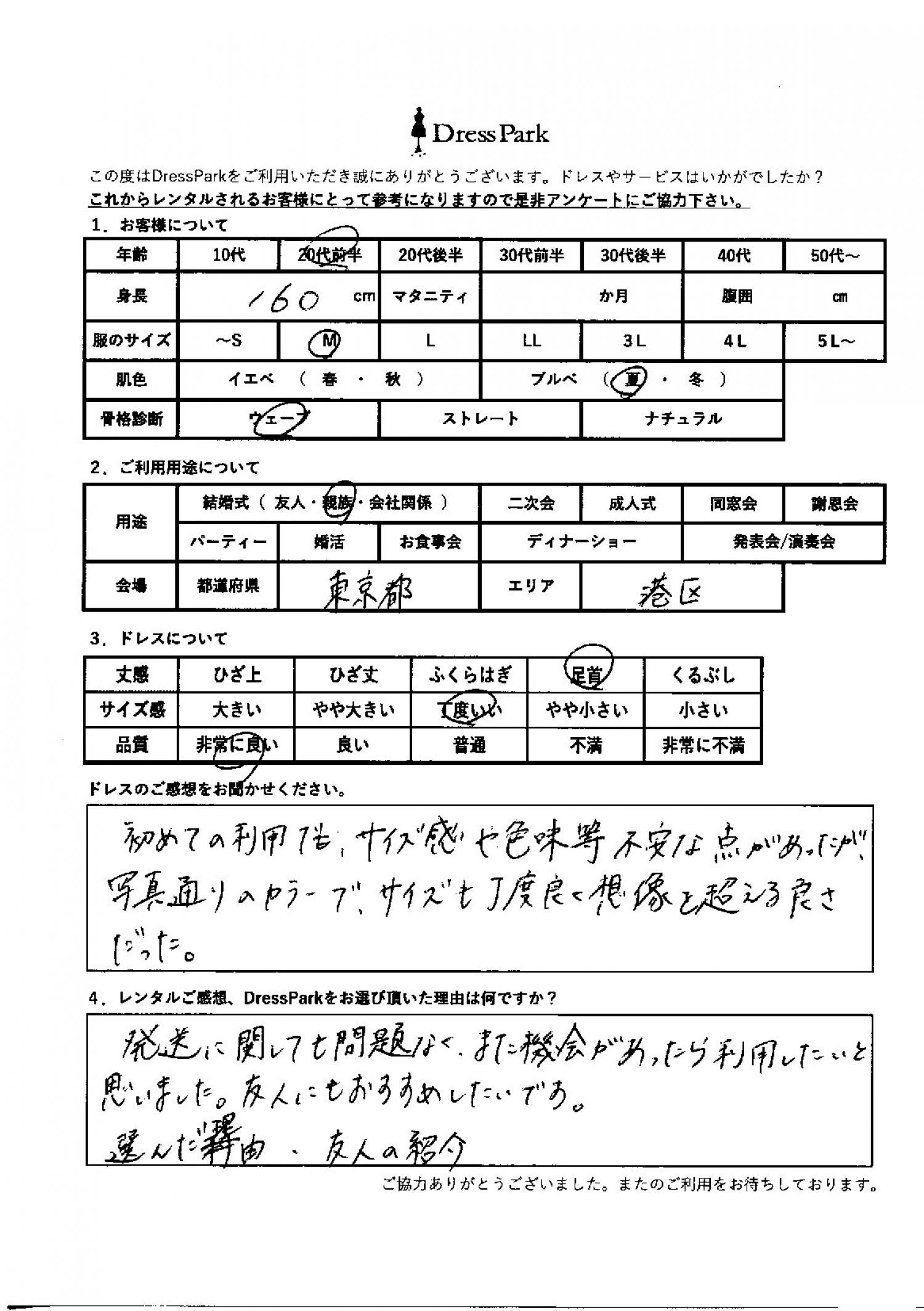 東京都 K.M様160㎝ Mサイズ六本木・麻布