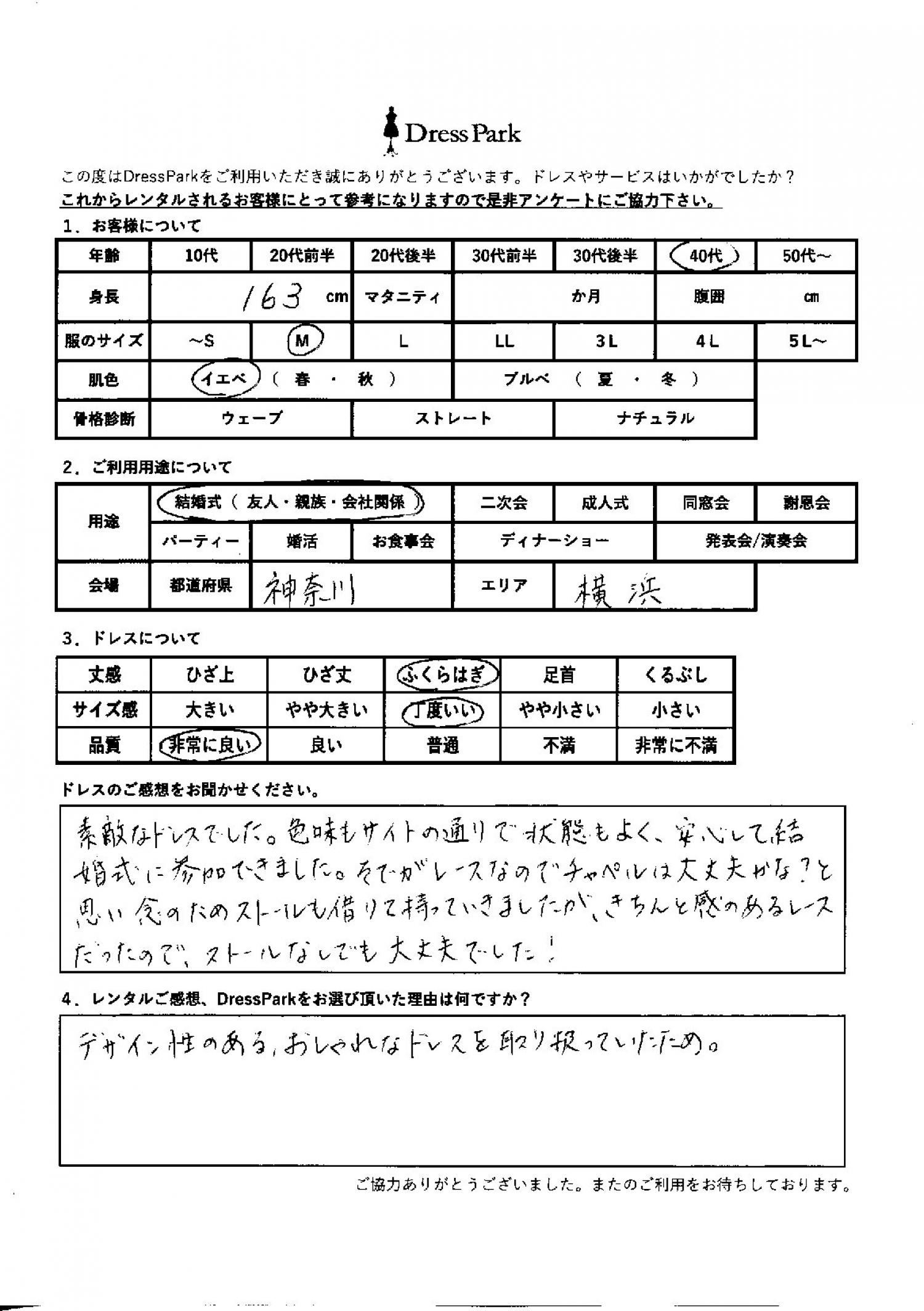 神奈川県 M.U様163㎝ Mサイズ横浜・みなとみらい