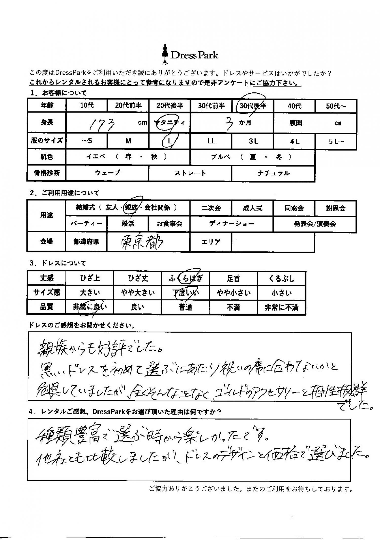 東京都 M.E様173㎝ Lサイズ マタニティ