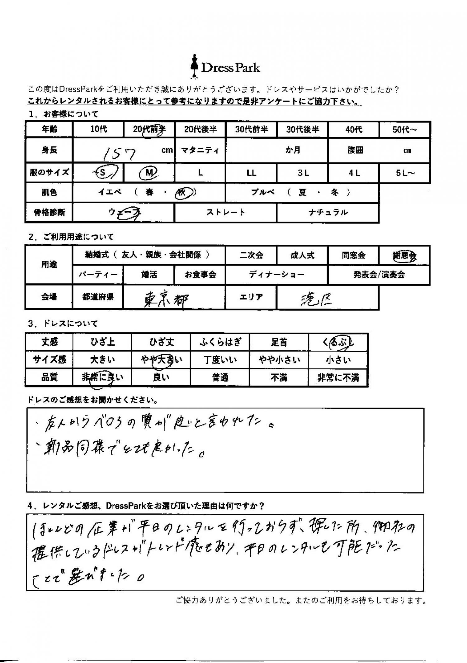 東京都 C.K様157㎝ ~Sサイズ六本木・麻布