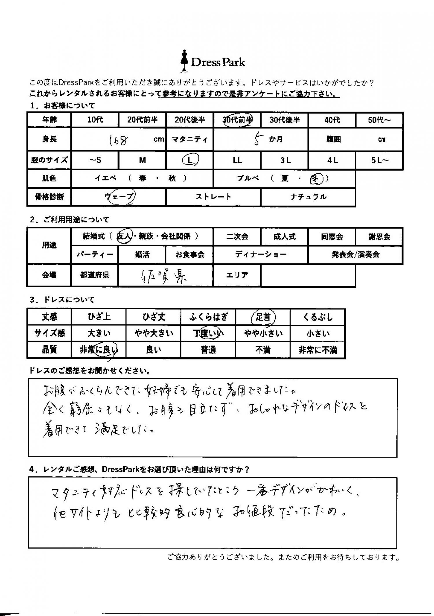 佐賀県 M.S様168㎝ Lサイズ マタニティ