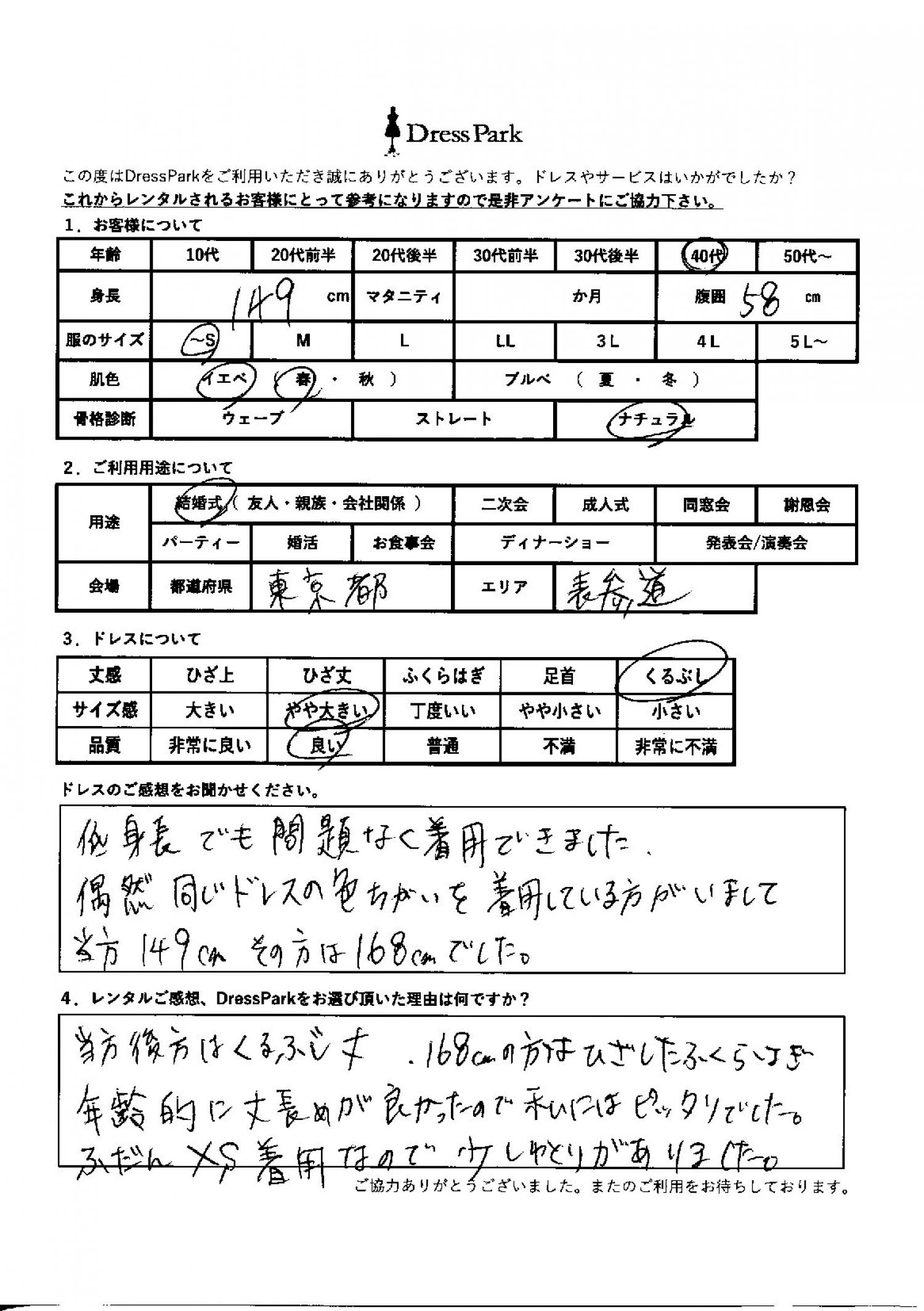 東京都 M.T様149㎝ ~Sサイズ青山・表参道