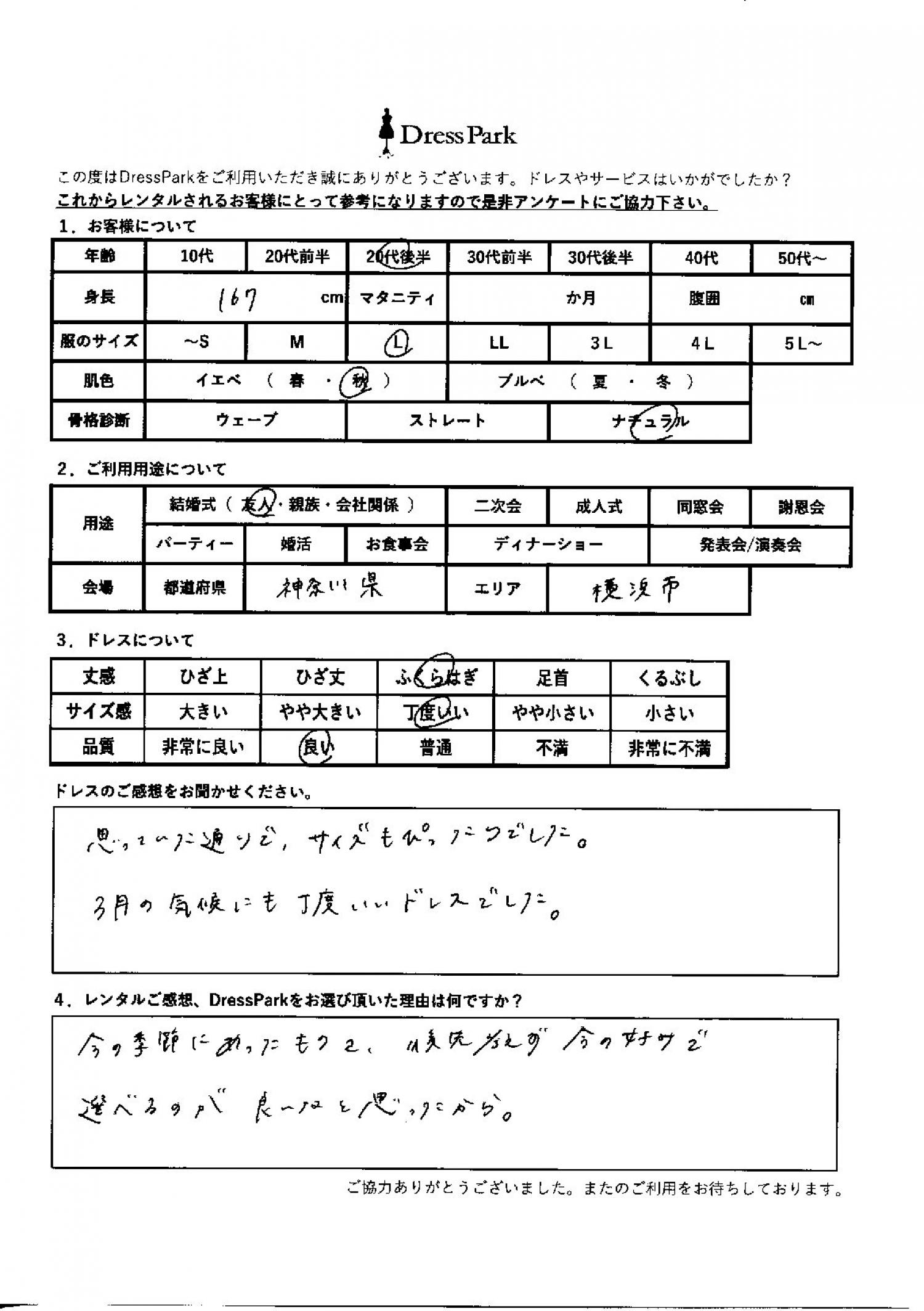 神奈川県 H.K様167㎝ Lサイズ横浜・みなとみらい
