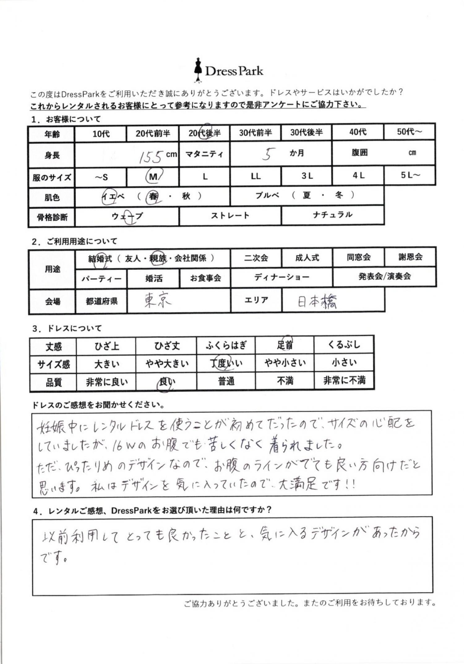 東京都 M.M様155㎝ Mサイズ マタニティ