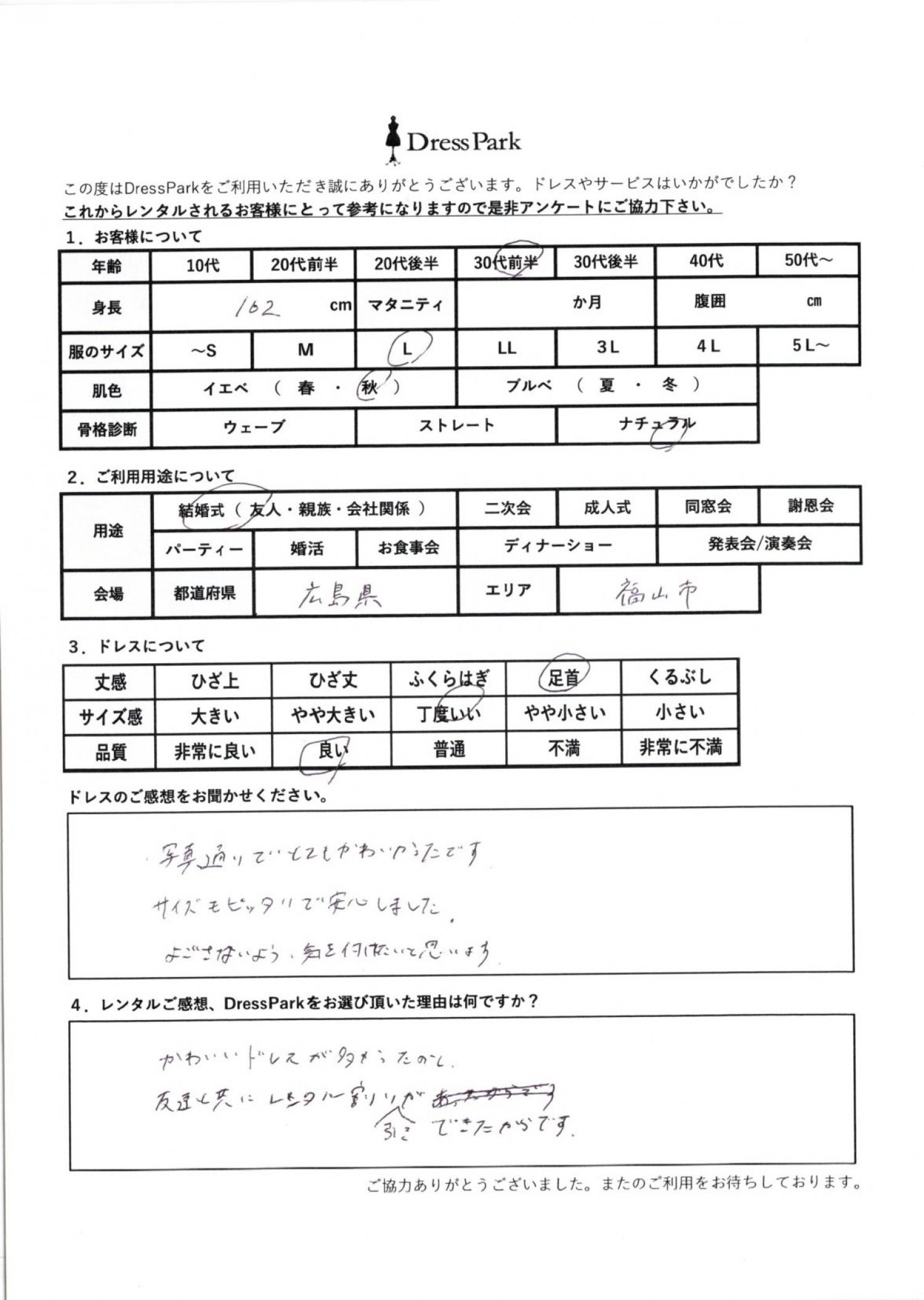 広島県 N.Y様162㎝ Lサイズ