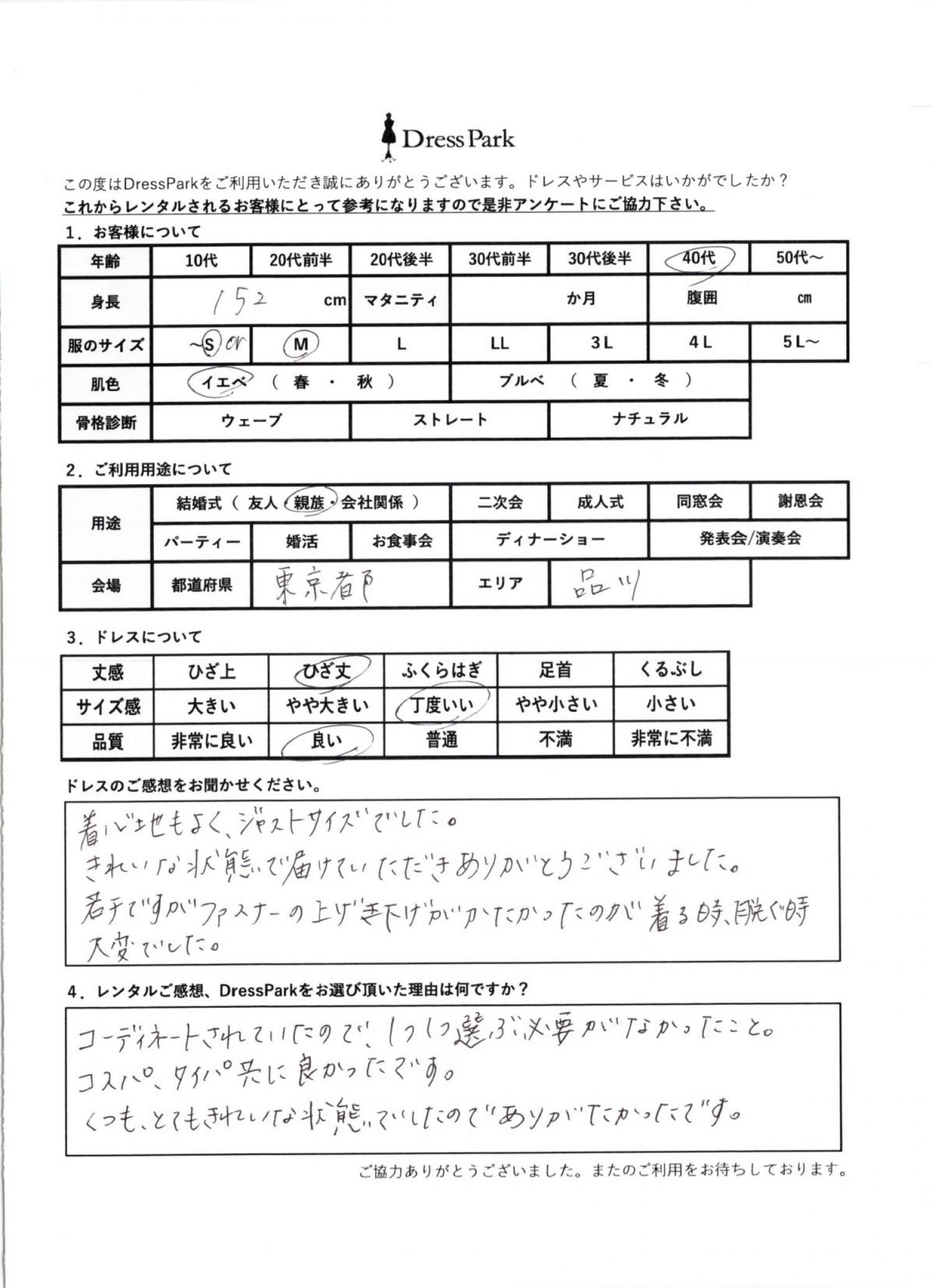 東京都 Y.M様152㎝ Mサイズ