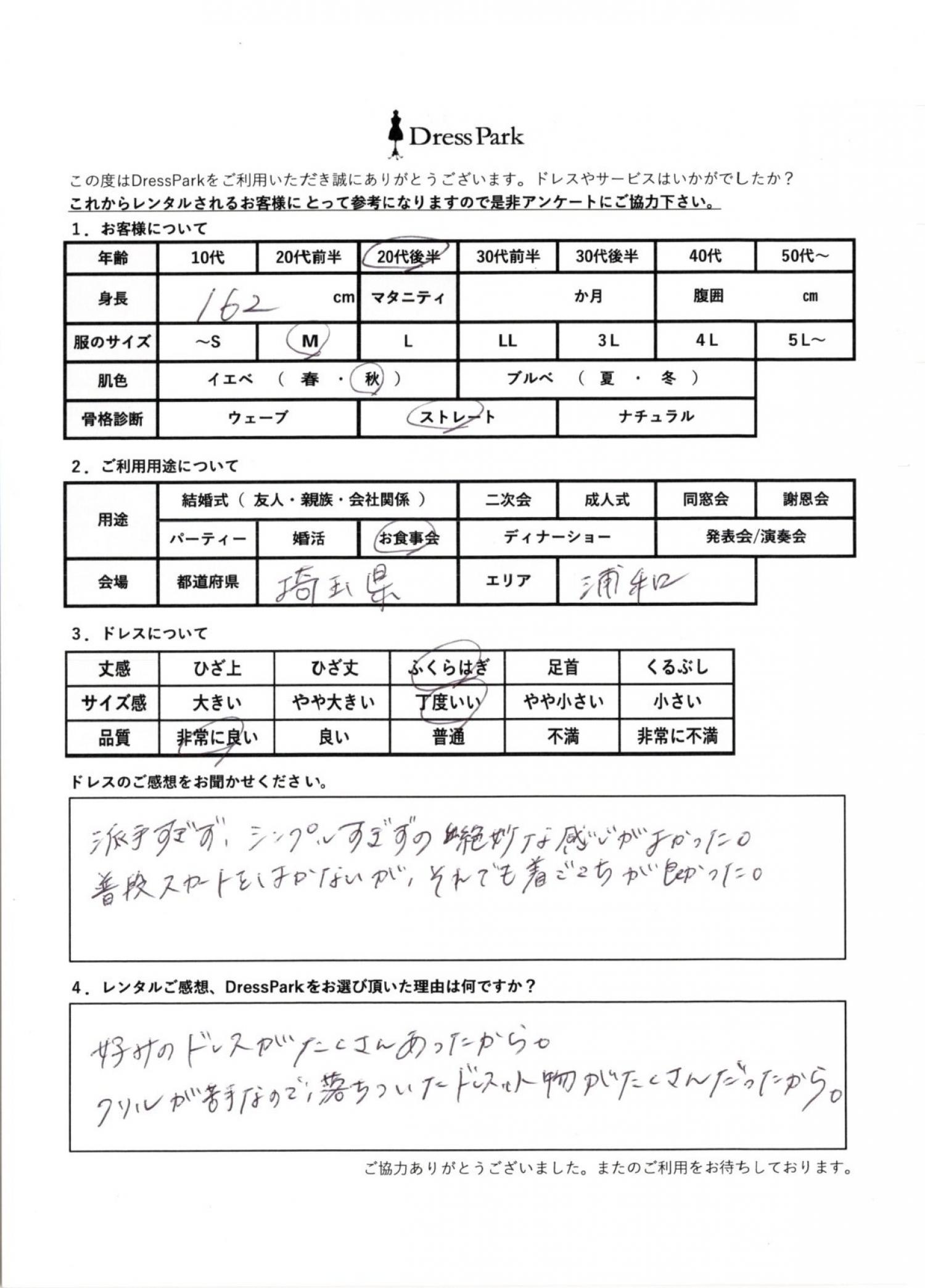 埼玉県 A.T様162㎝ Mサイズ大宮・浦和