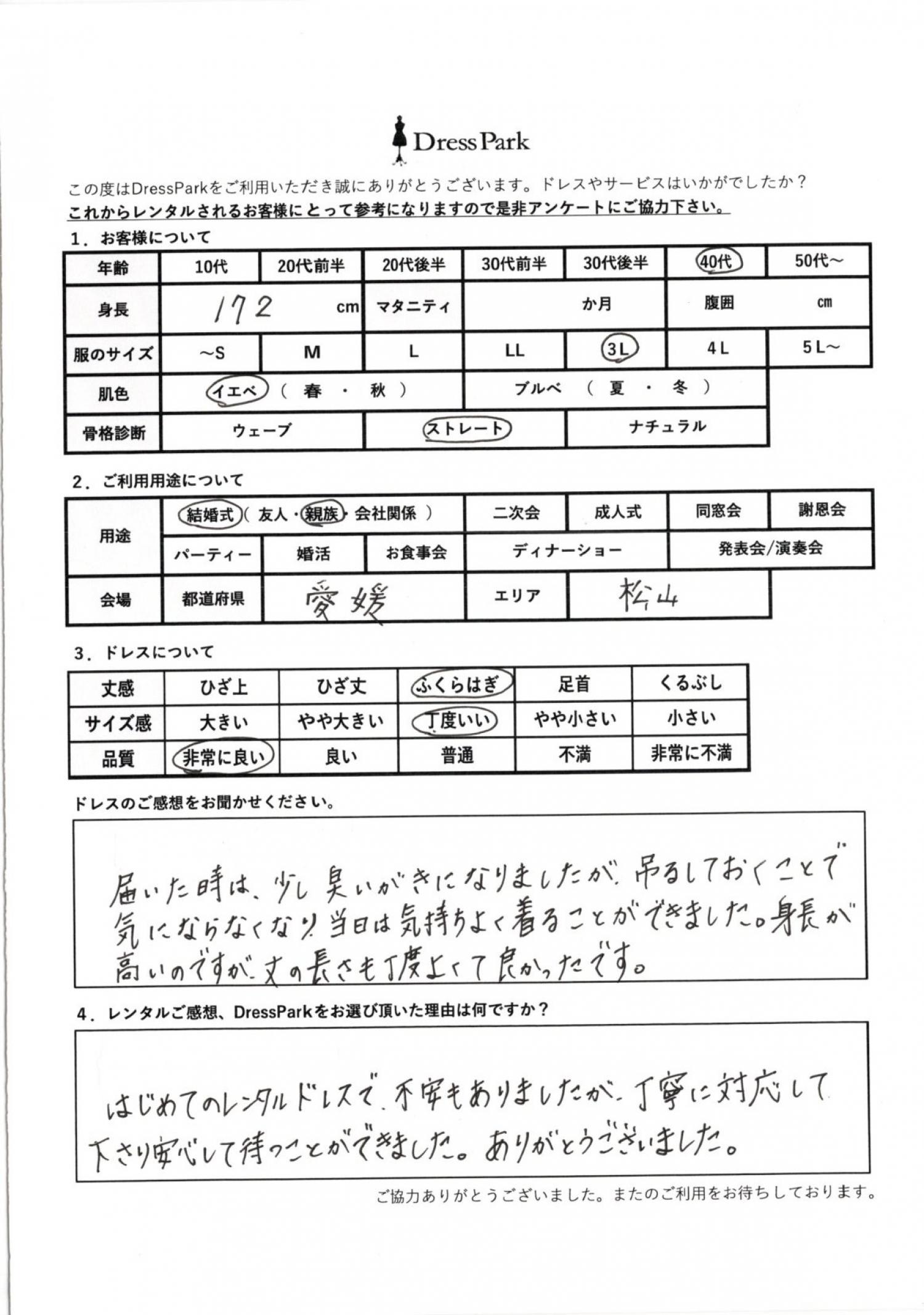 はじめてのレンタルドレスで不安もありましたが、丁寧に対応してくださり、安心して待つことができました。ありがとうございました。