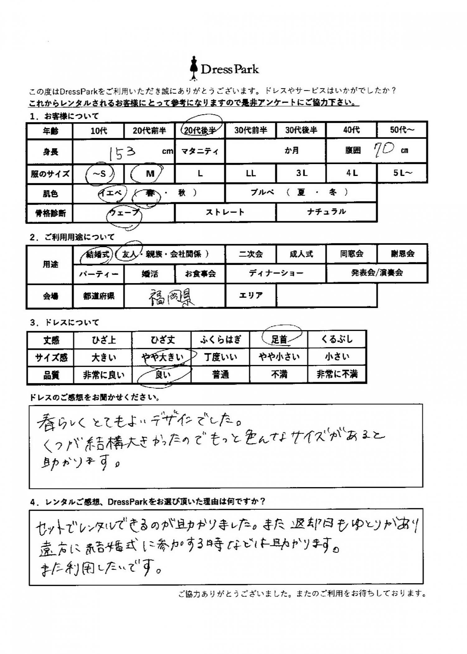 福岡県 M.O様153㎝ ~Sサイズ