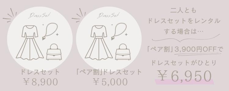 「ドレスセット」のレンタルなら「ペア割」で3,900円割引に!