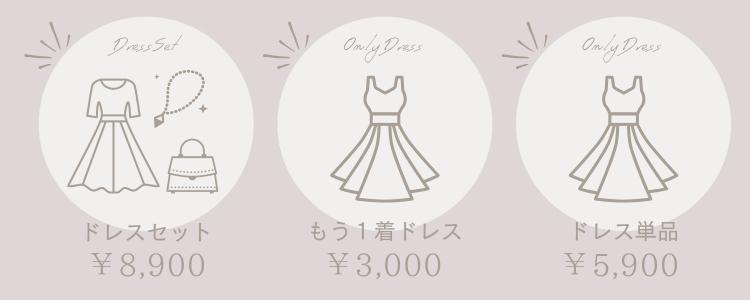 「ドレスセット」は7,450円、「ドレス単品」は4,450円でレンタルできます♪